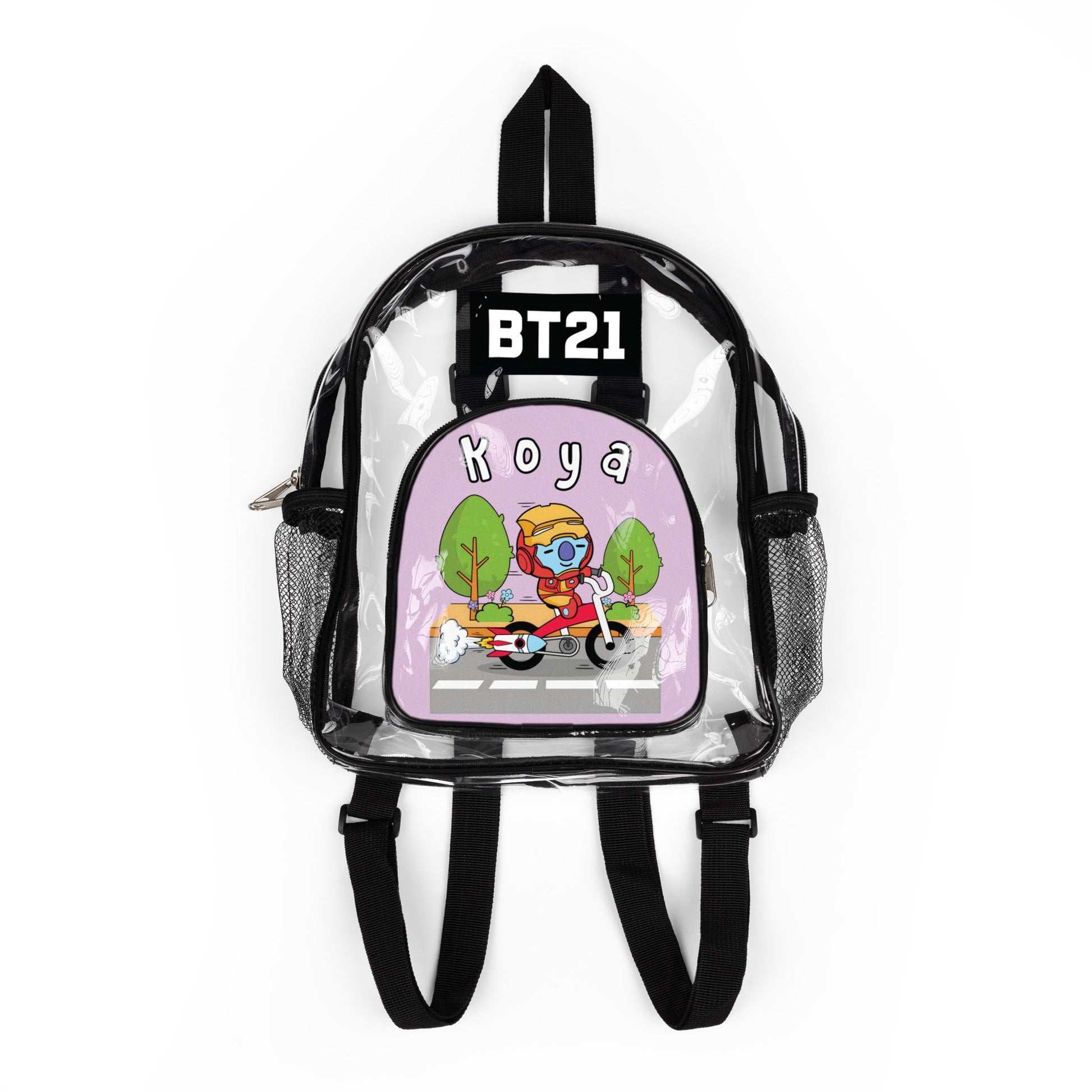 Show off your love for BT21 with our BT21 clear stadium concert backpack! Featuring the BT21 characters dressed as a comic book superheros. Like their BTS counterparts, they enjoy the same hobbies as the members do. Perfect for BTS concerts, using as school book bag, or adding to your K-pop collection, this backpack makes a great gift for any BTS fan or BTS army member. Use this bag at the upcoming BTS 2026 Arirang World Tour Concert to hold your army bomb, freebies, merch and more.