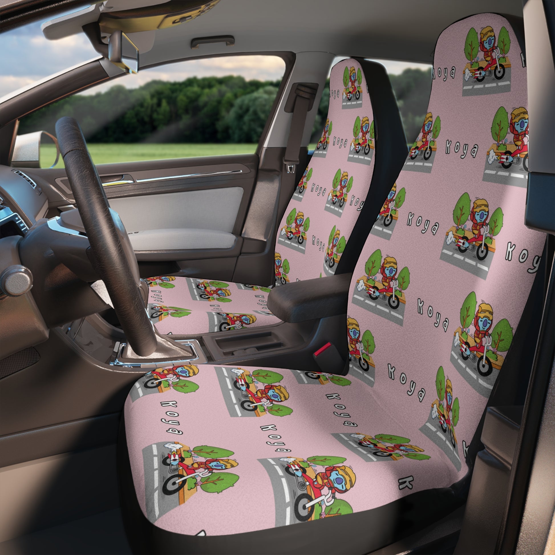 BT21 Koya Pink Car Seat Cover Pattern Design - Identical Set of 2
