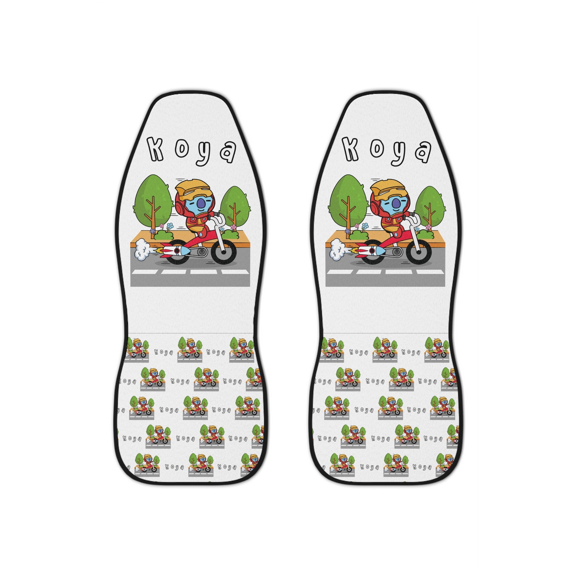 BT21 Koya White Car Seat Cover Single Pattern Design Combo - Identical Set of 2