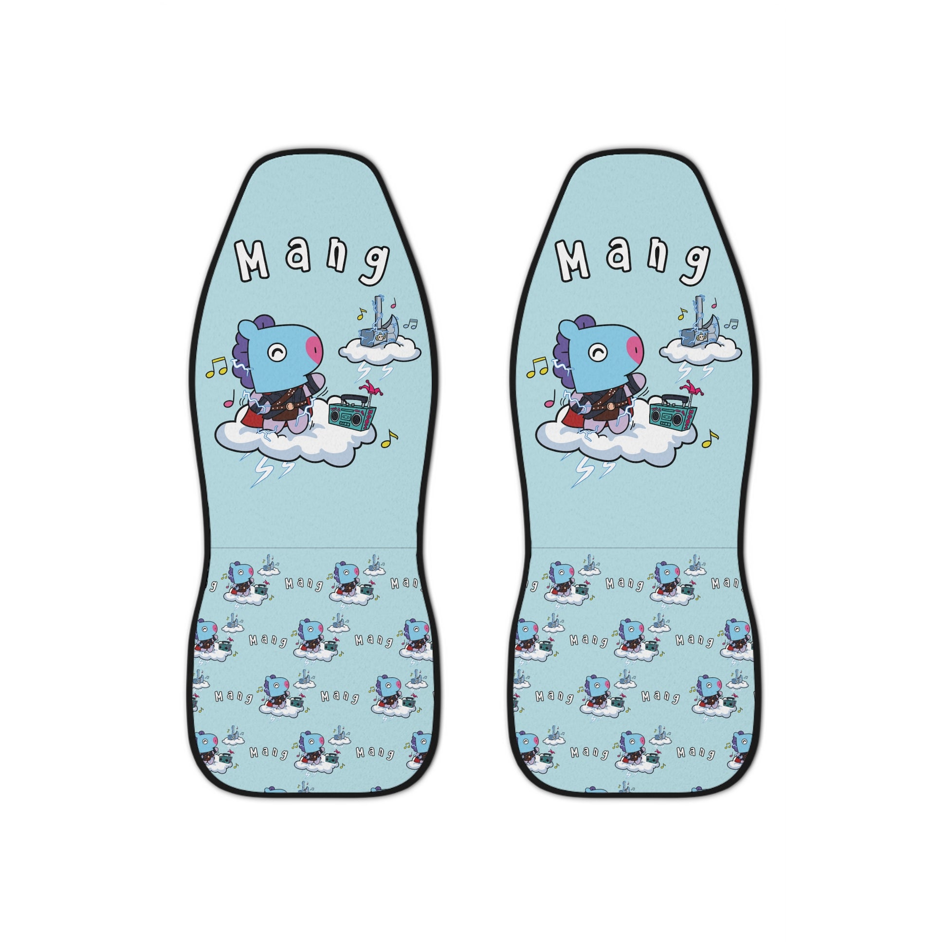 BT21 Mang Blue Car Seat Cover Single Pattern Combo Design - Identical Set of 2