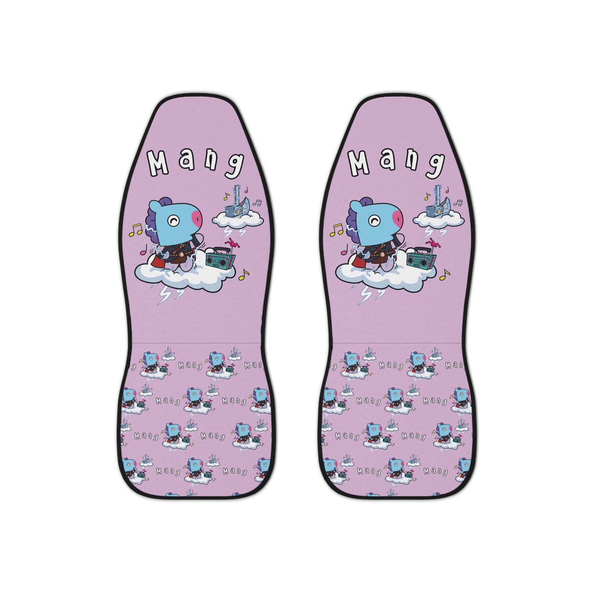 BT21 Mang Purple Car Seat Cover Single Pattern Combo Design - Identical Set of 2