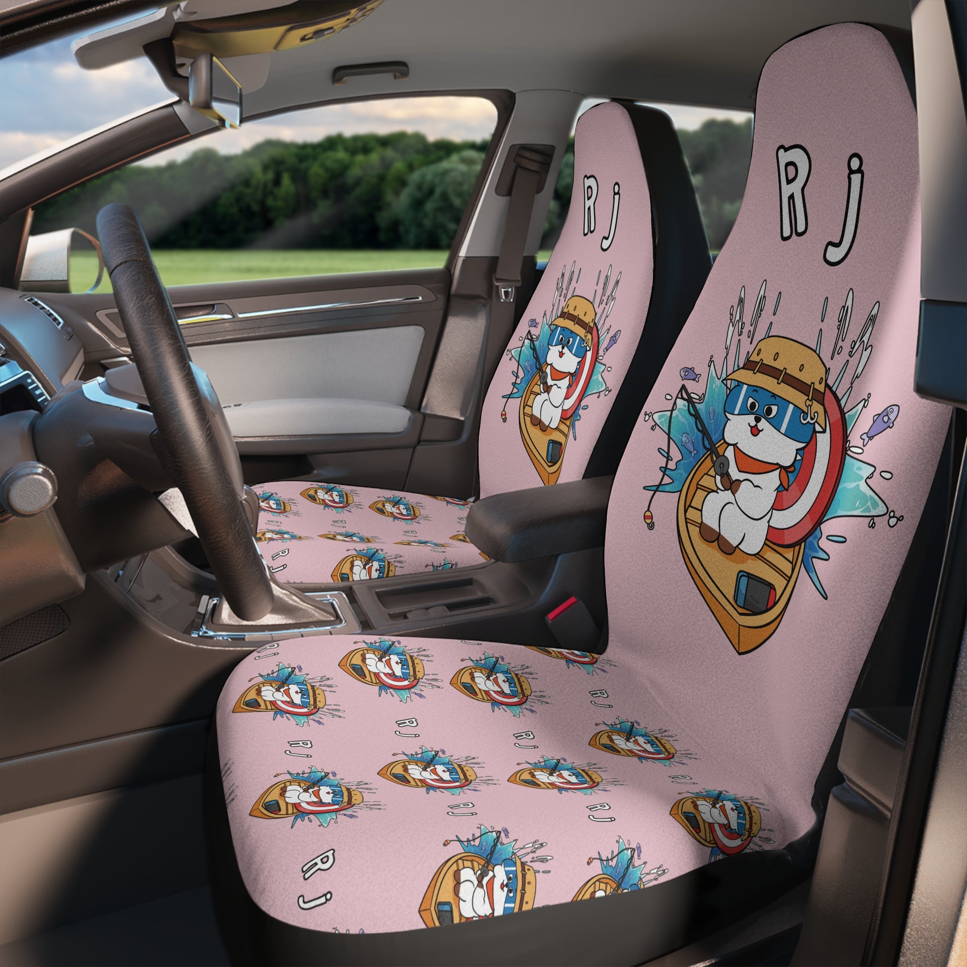 BT21 RJ Pink Car Seat Cover Single Pattern Combo Design - Identical Set of 2