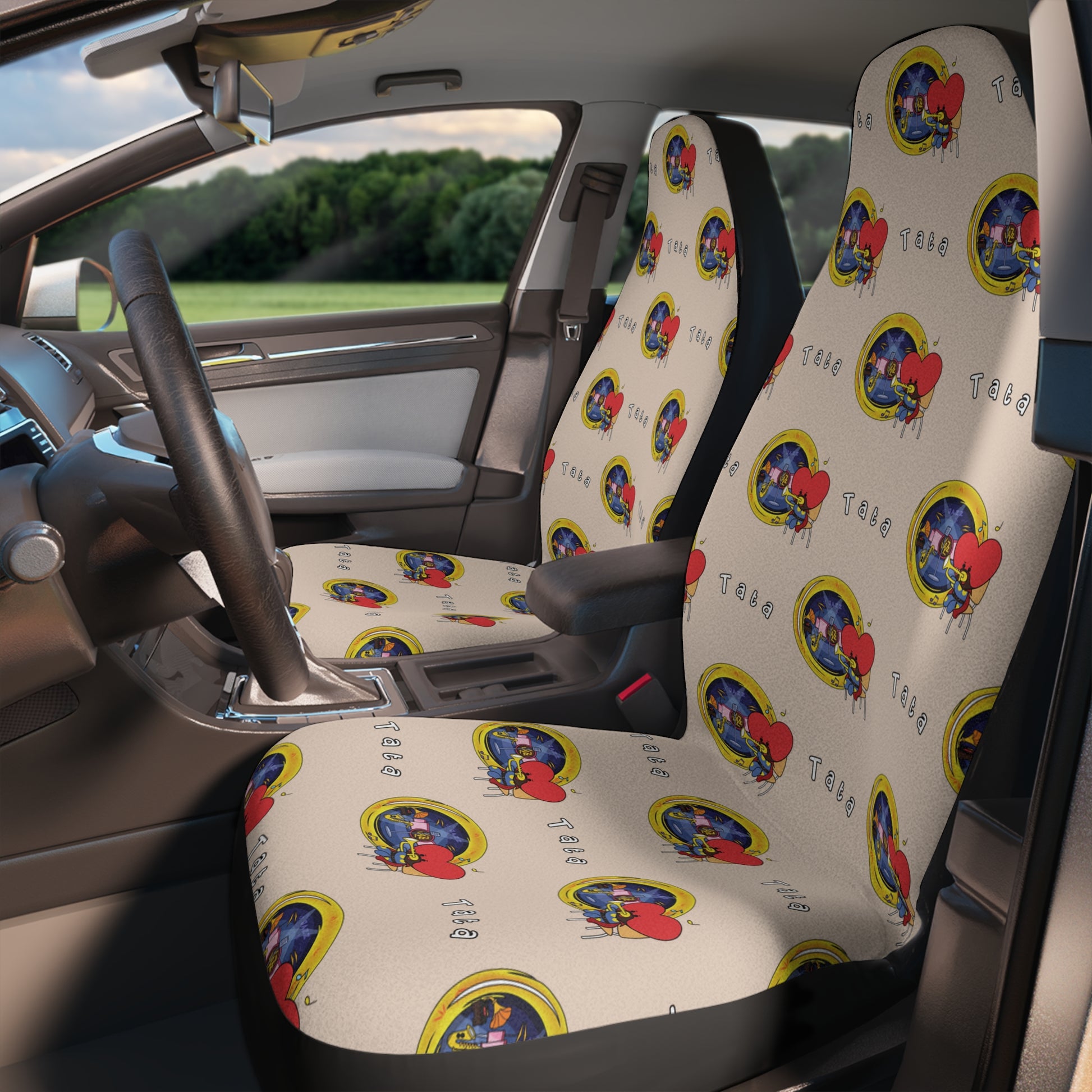 BT21 Tata Beige Car Seat Cover Pattern Design - Identical Set of 2