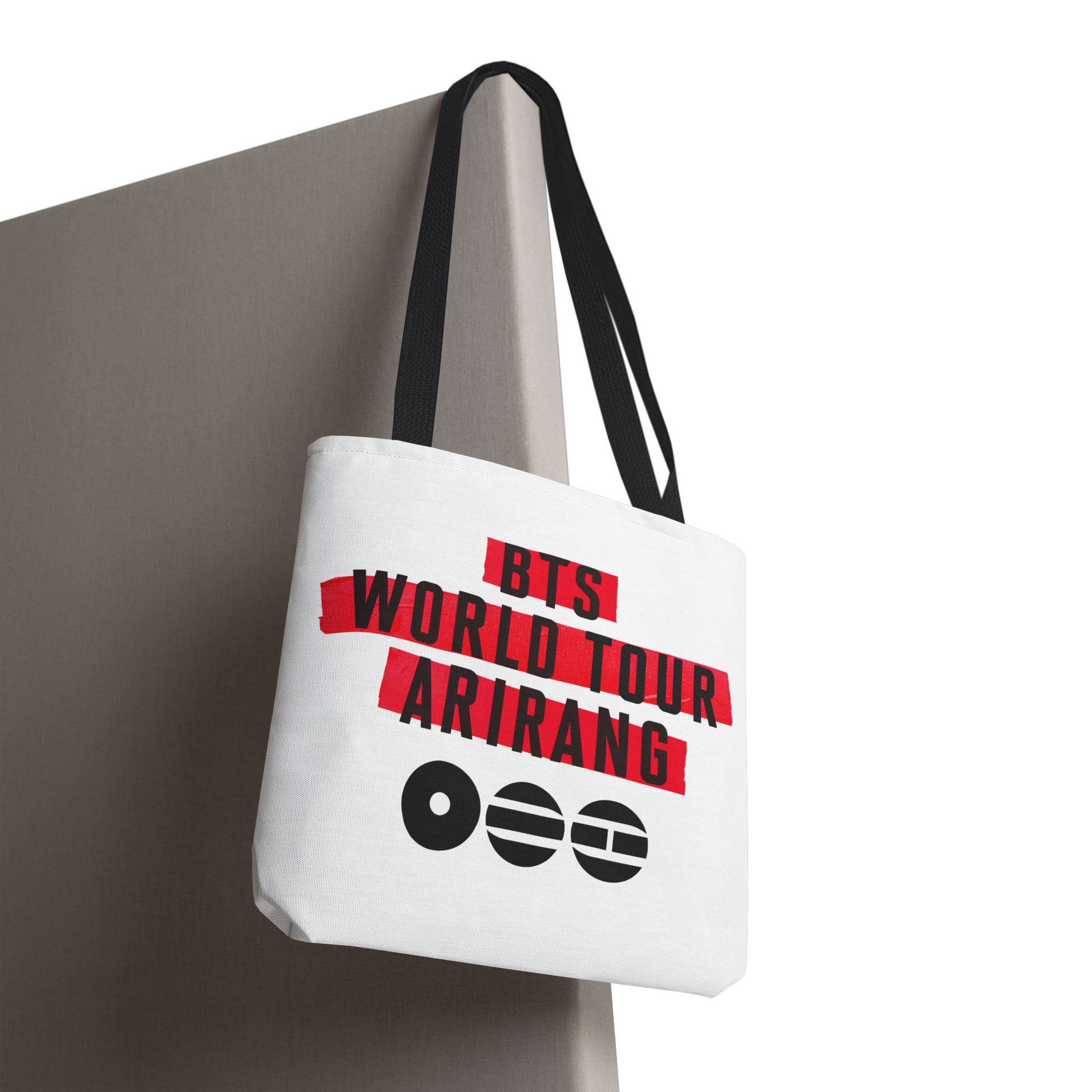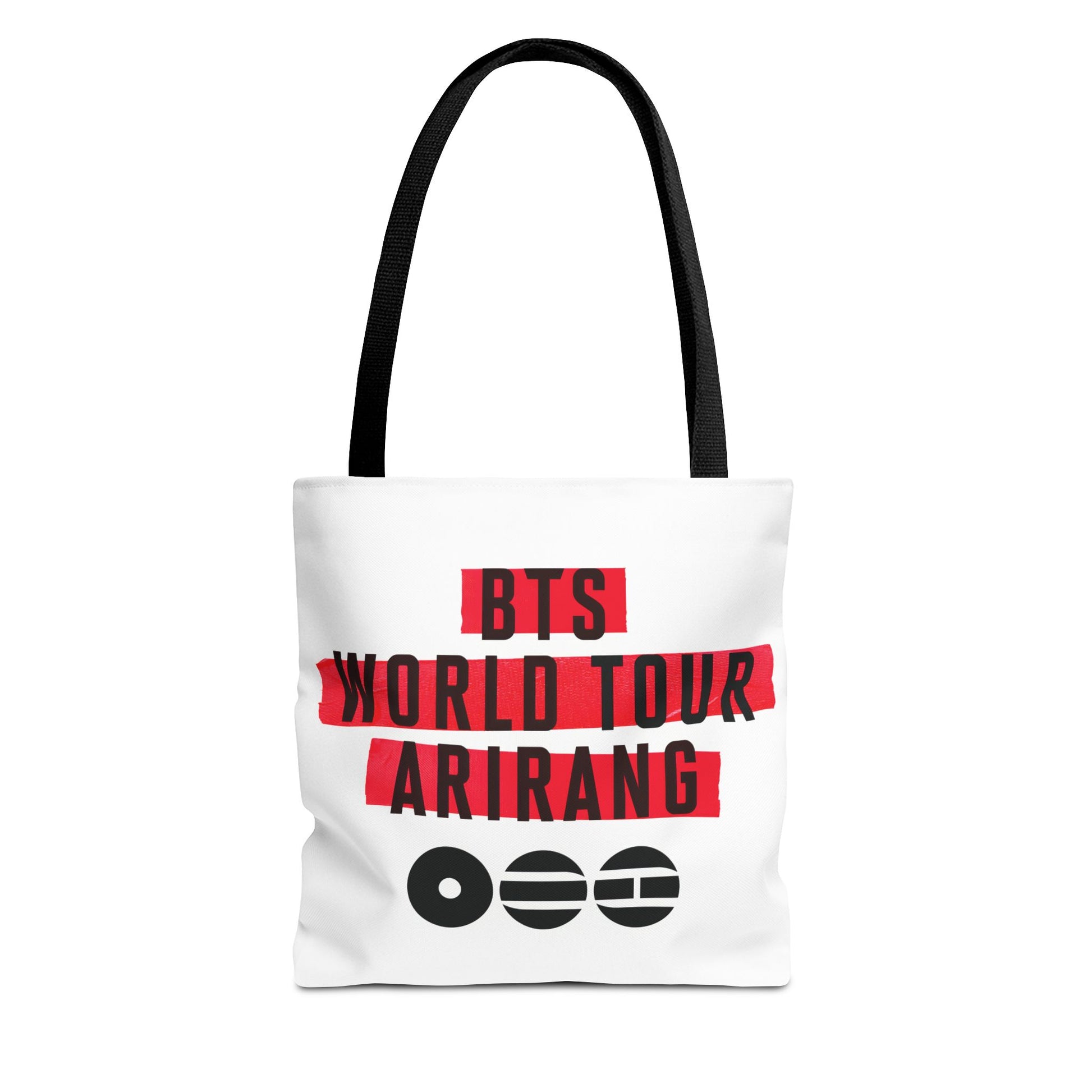 Show off your love for all seven BTS members as they prepare for this upcoming tour! This Arirang tote bag makes an ideal gift for BTS Army fans or anyone going to the 2026 World Tour concerts. Celebrate BTS's comeback success by using this for concerts, using as school book bag, travel bag or just adding it to your K-pop collection.