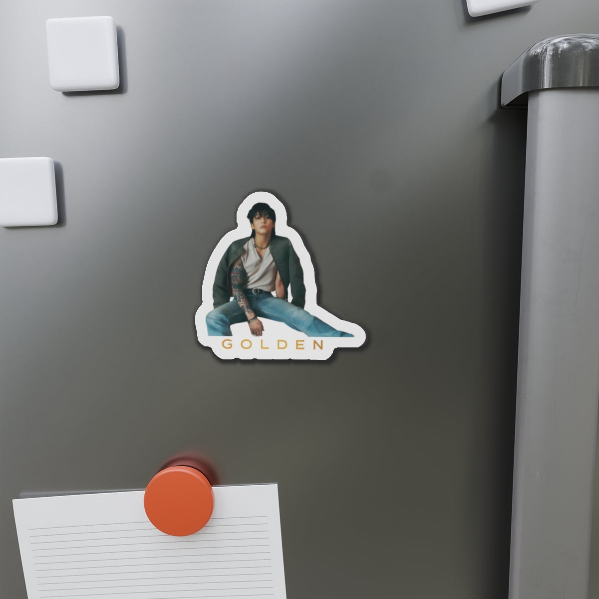 Show off your love for BTS’s Jeon Jungkook with this stylish magnet! This Jungkook merch makes a fantastic gift for BTS Army or Jungkook fans. Celebrate Jungkook's success by using this as a car magnet, fridge magnet, whiteboard magnet, school locker magnet, or any magnetic surface. Add this to your growing K-pop collection now! Available for Jungkooks Golden Album and Jungkooks Seven Album.