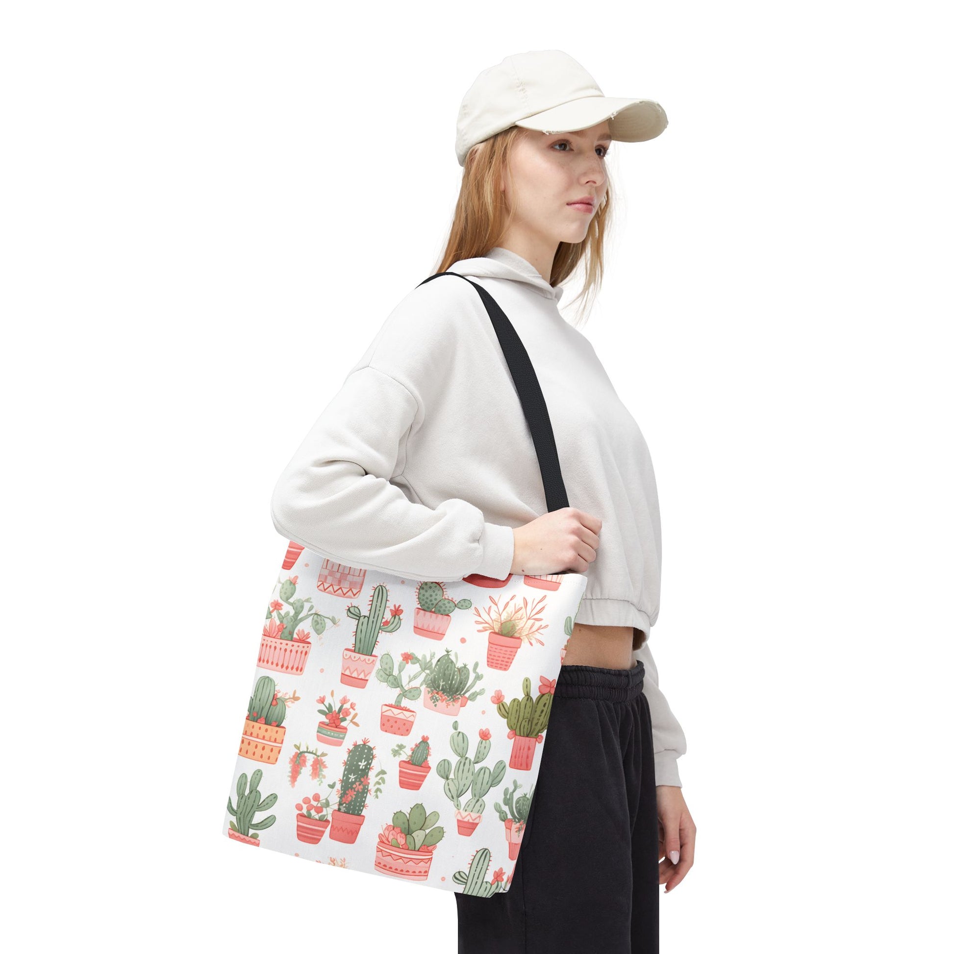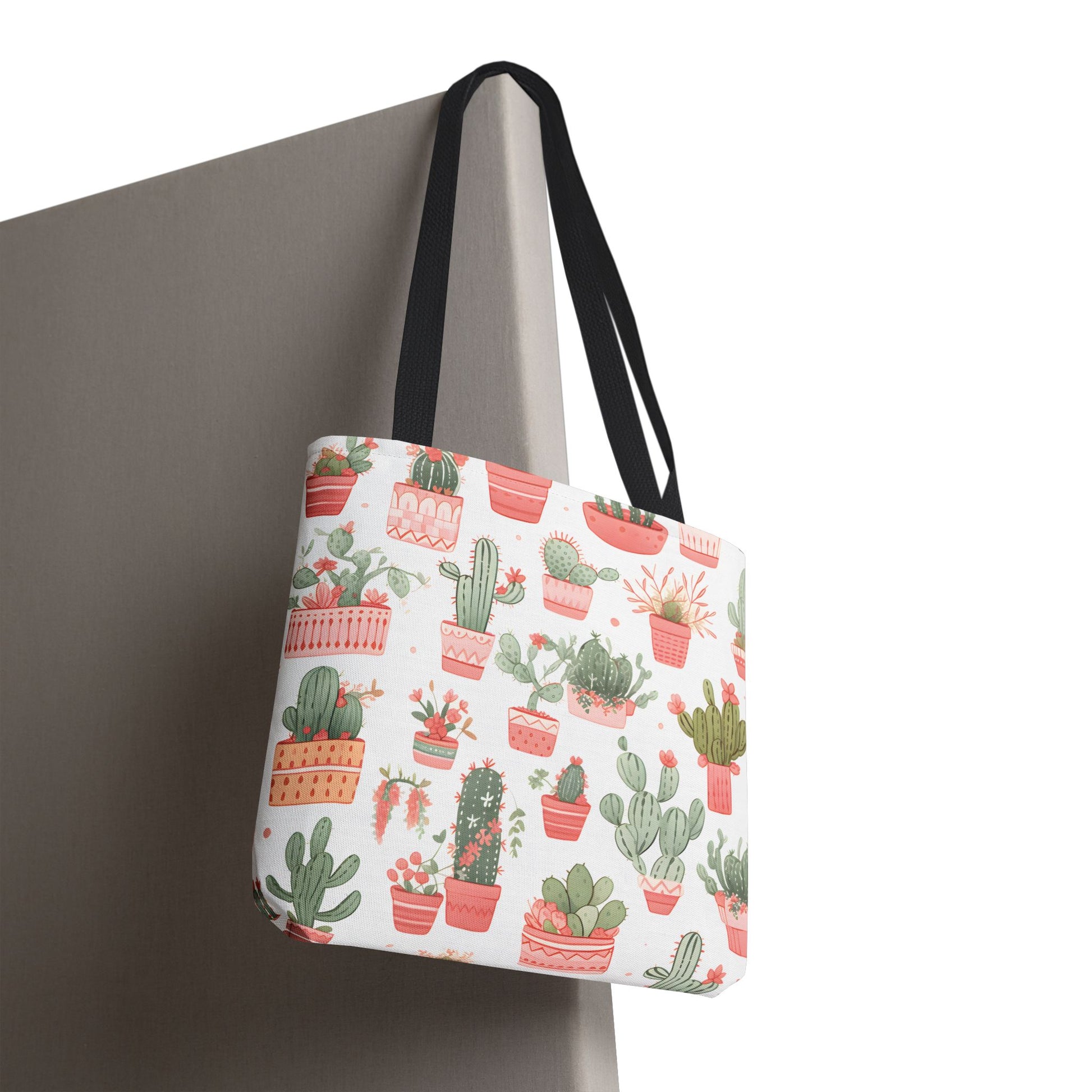 Celebrate your love for cacti with our cactus pattern tote bag. Featuring vibrant cactus designs inspired by the southwest deserts, this reusable bag is perfect for farmers market shopping or everyday grocery runs. It's also an ideal destination wedding gift or a thoughtful present for cactus lovers. Whether you're planning an Arizona or desert vacation or just need a stylish tote, this bag combines practicality with a touch of nature. Perfect for carrying your essentials, this eco-friendly bag is both versatile and durable.