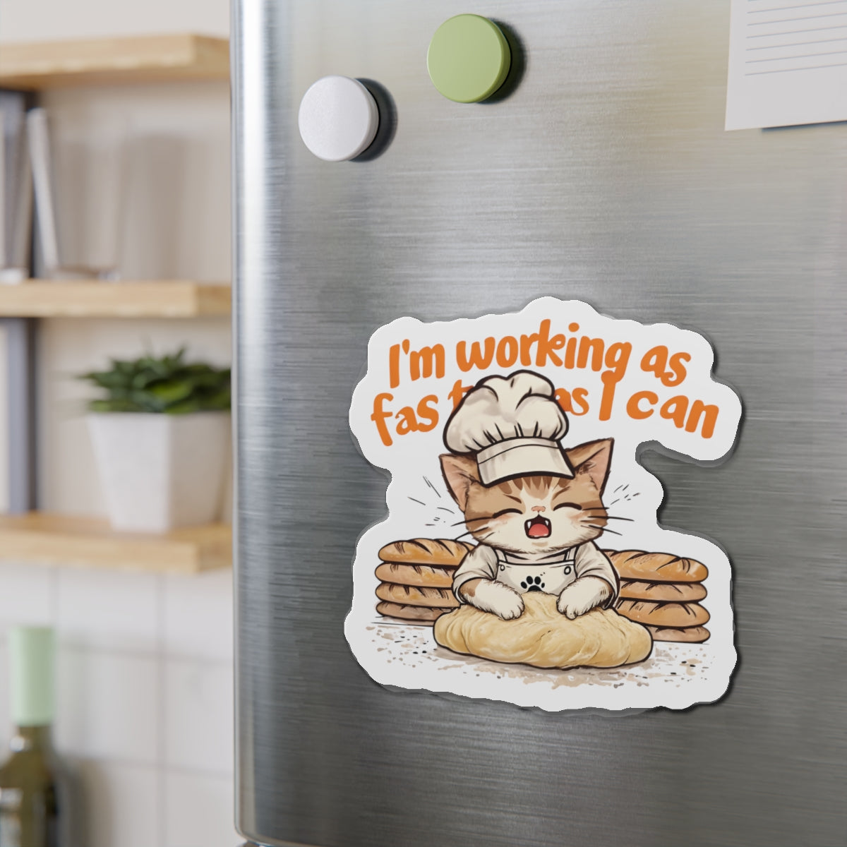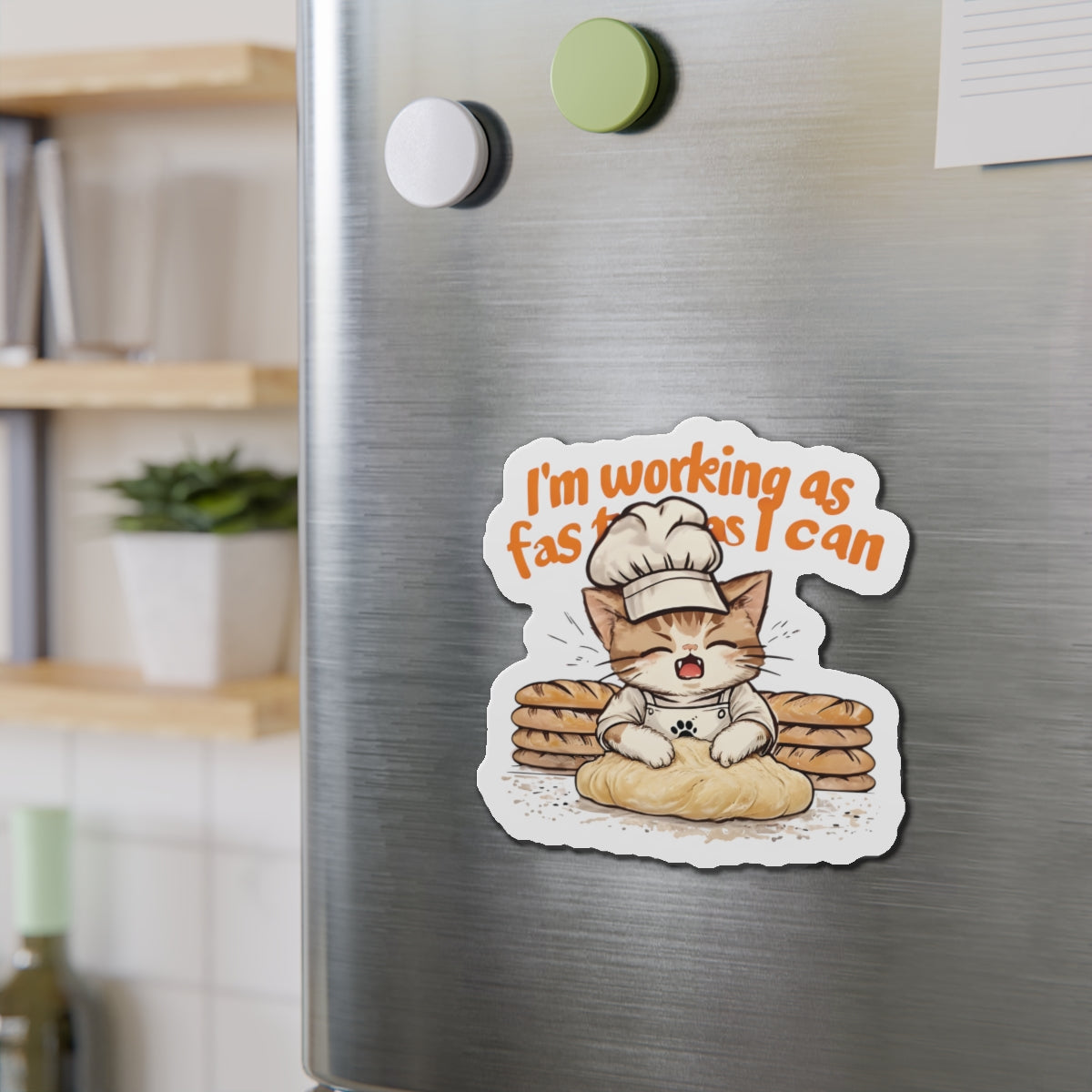 Cat Baking Bread Working Overtime Magnet - Funny & Relatable