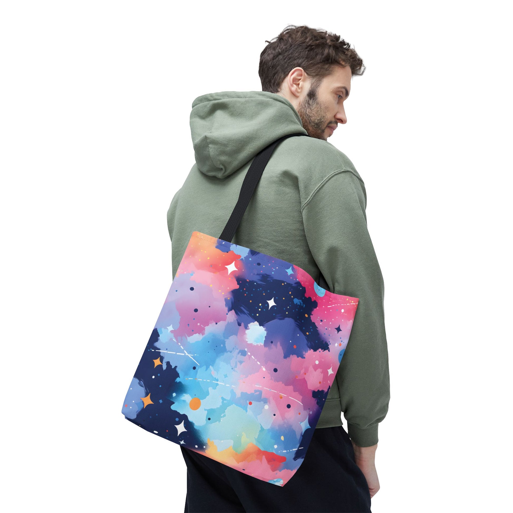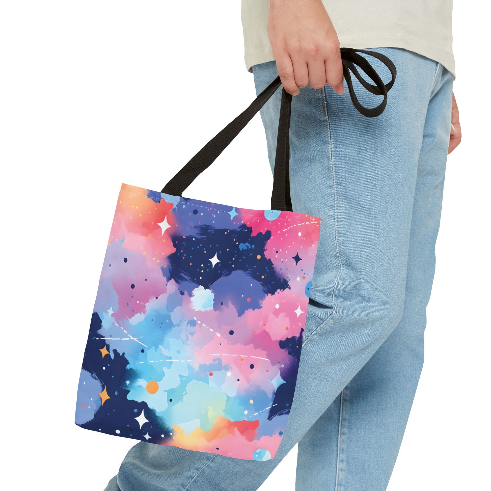 Discover the cosmos with our colorful space themed tote bags! Featuring vibrant galaxy and night sky patterns, this bag features celestial and trippy designs that showcase the cosmos in a fashionable manner. Use this tote as a reusable grocery bag, your childs daycare and book bag, or as a fun accessory to carry wherever you go. These make the perfect gift for anyone who loves space or bright colors.