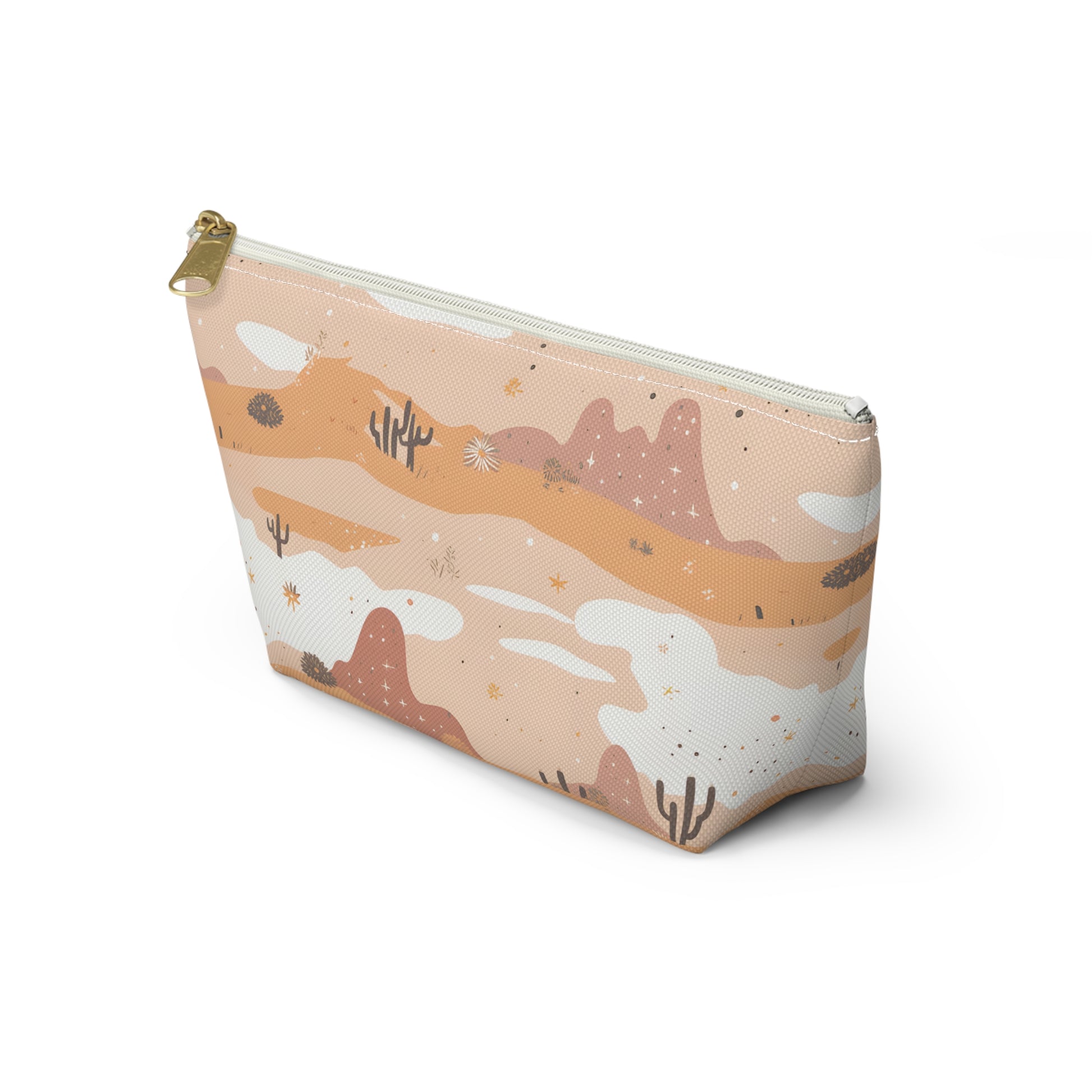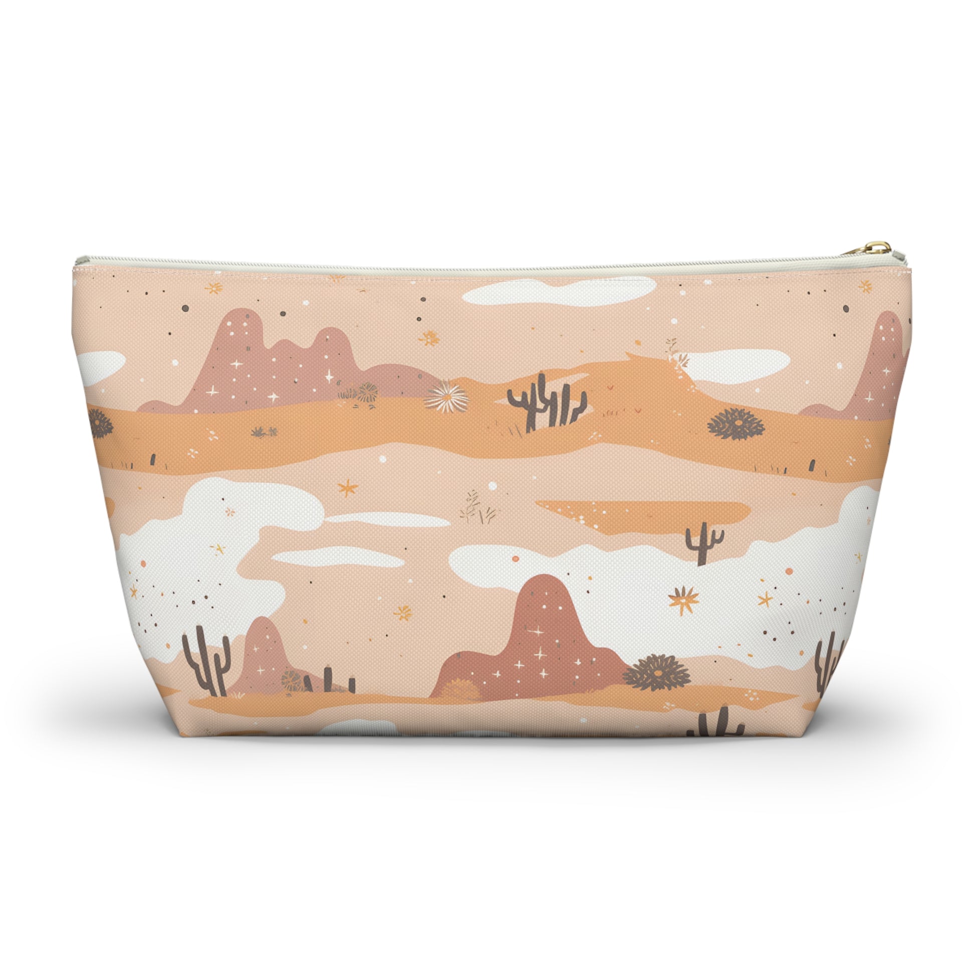 Capture the essence of the Arizona desert with this desert patterned accessory pouch. Ideal for desert lovers, it’s perfect for storing makeup, art supplies, or travel essentials. Use it as a pencil case, jewelry bag, or bachelorette party favor. This versatile pouch makes a great destination wedding gift, combining southwest desert style with practicality.