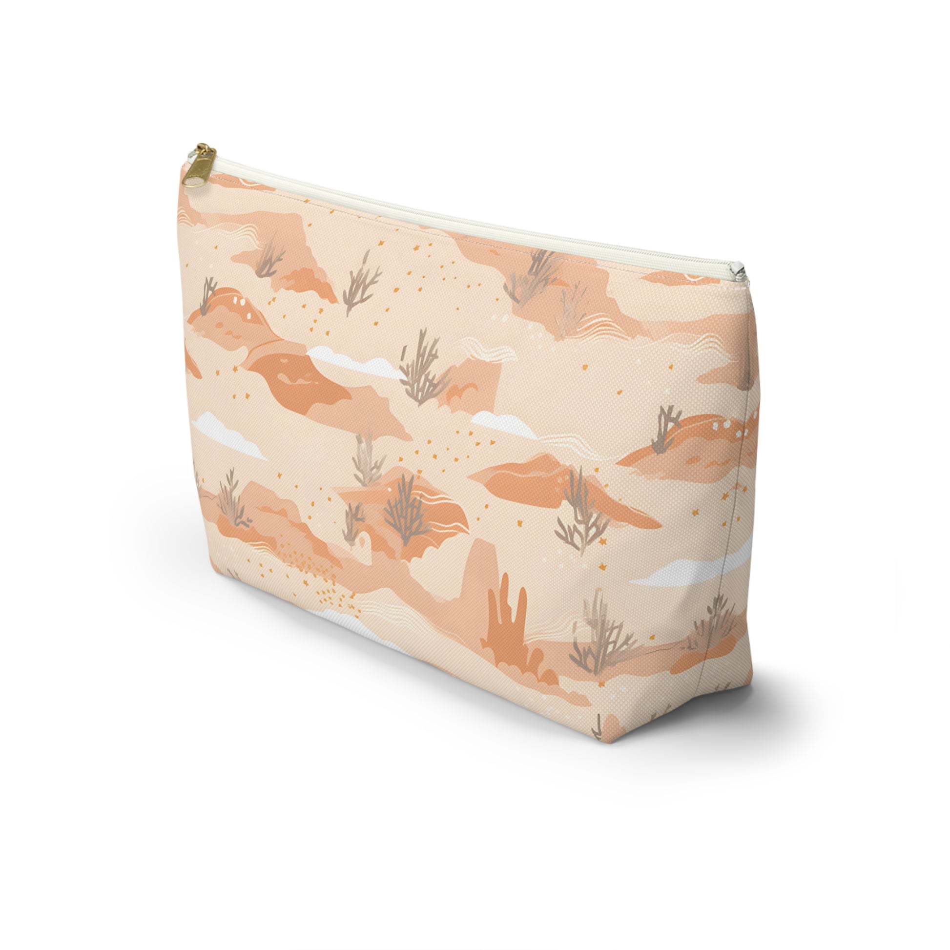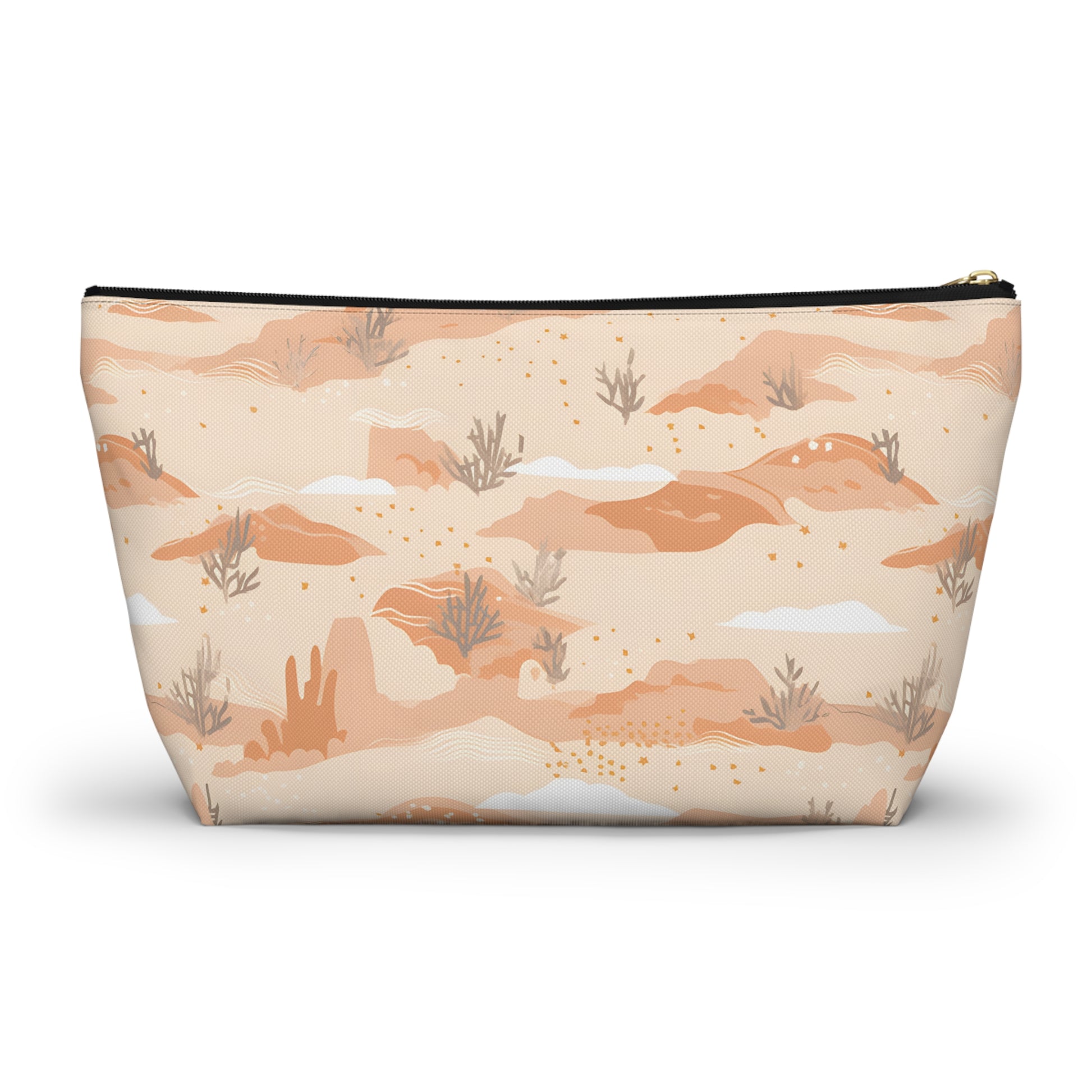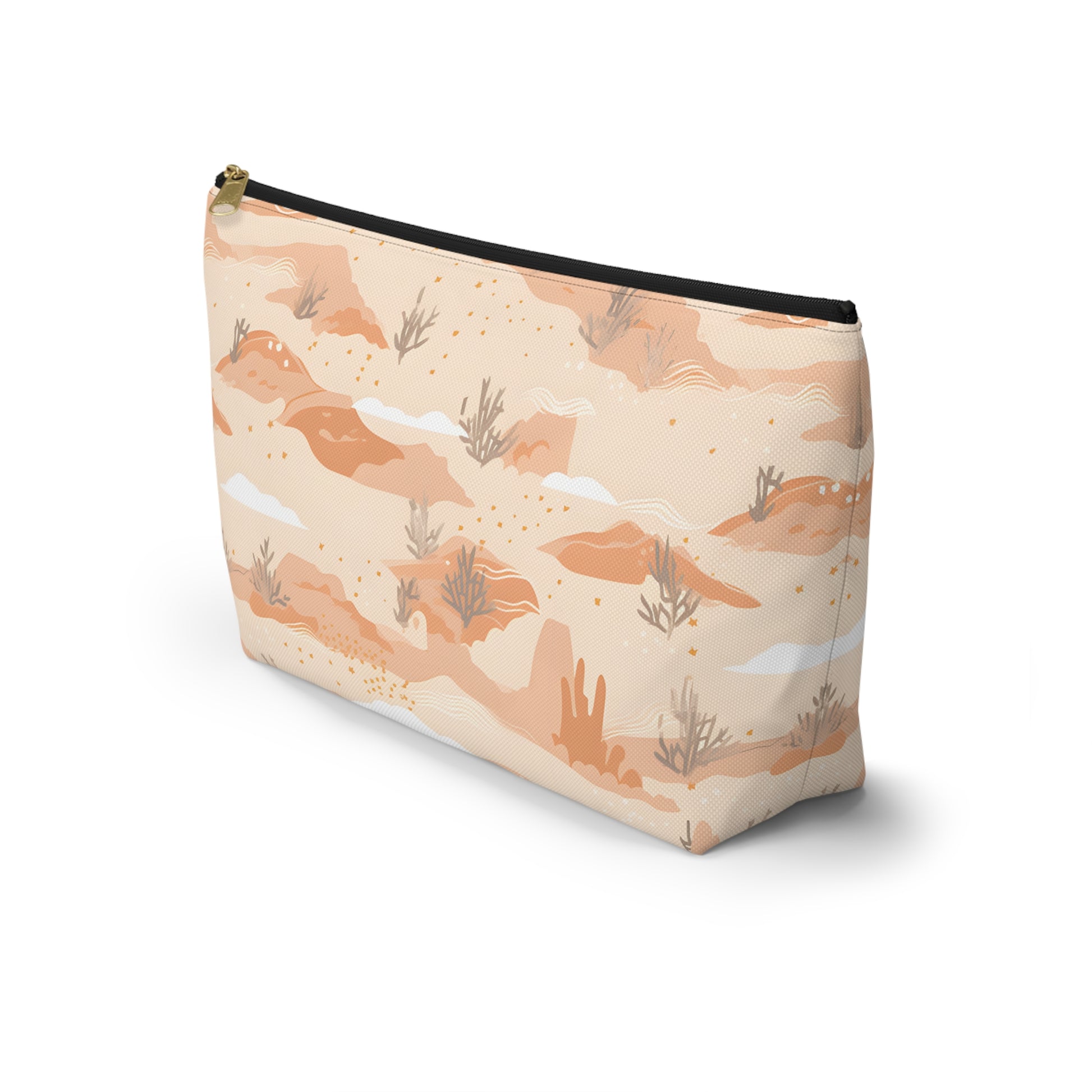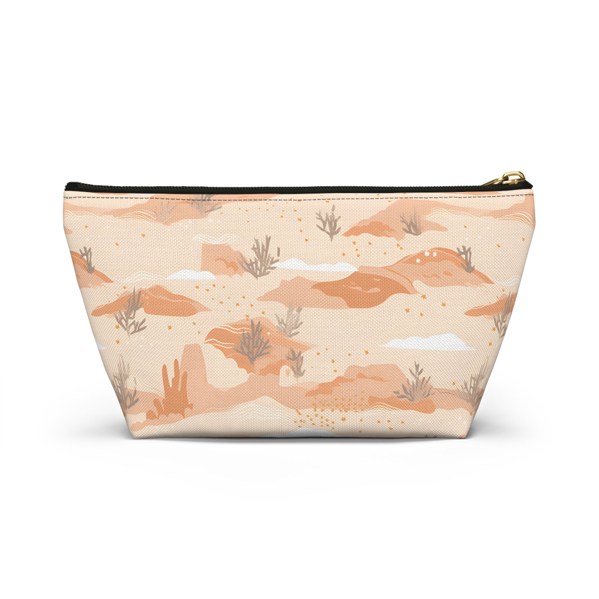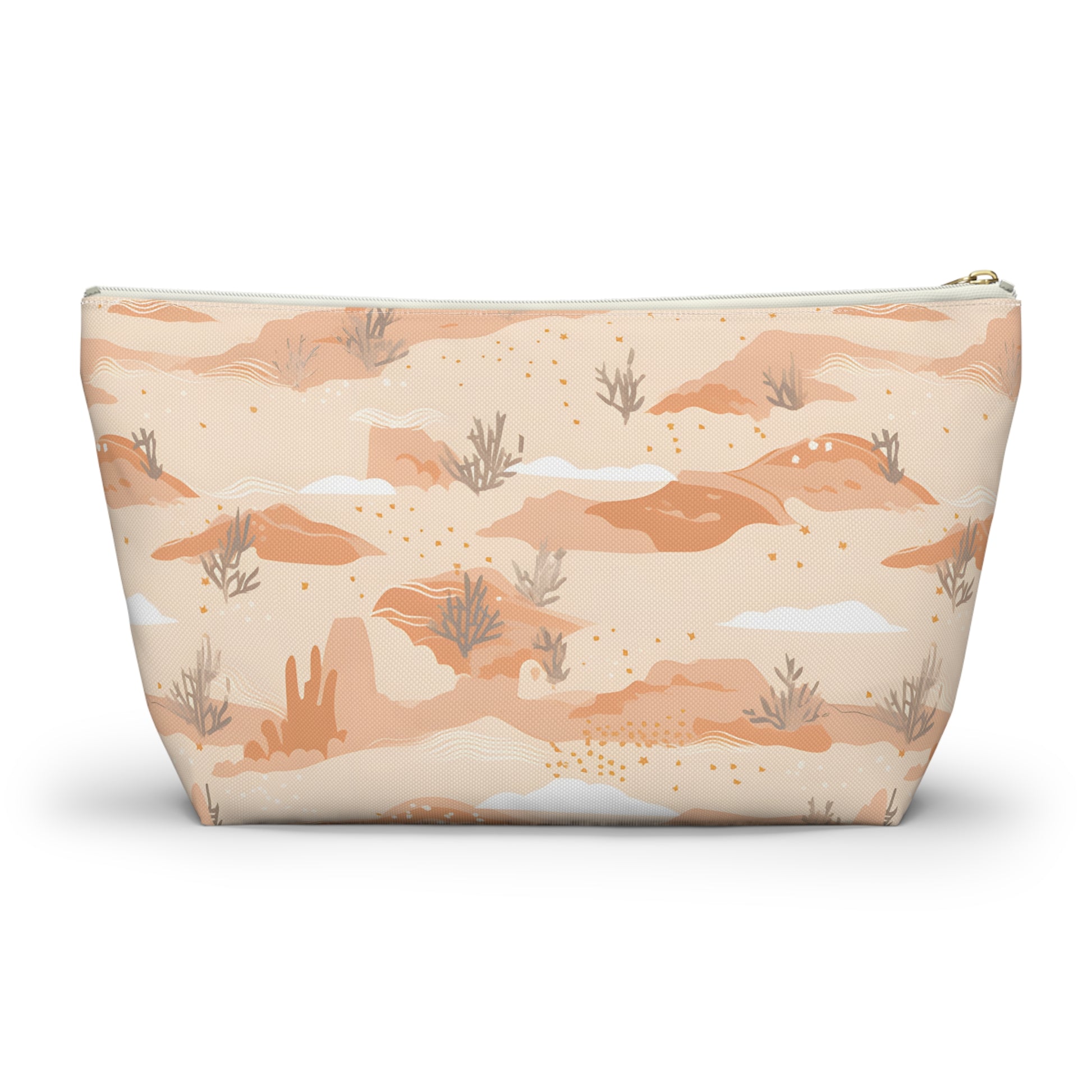 Capture the essence of the Arizona desert with this desert patterned accessory pouch. Ideal for desert lovers, it’s perfect for storing makeup, art supplies, or travel essentials. Use it as a pencil case, jewelry bag, or bachelorette party favor. This versatile pouch makes a great destination wedding gift, combining southwest desert style with practicality.