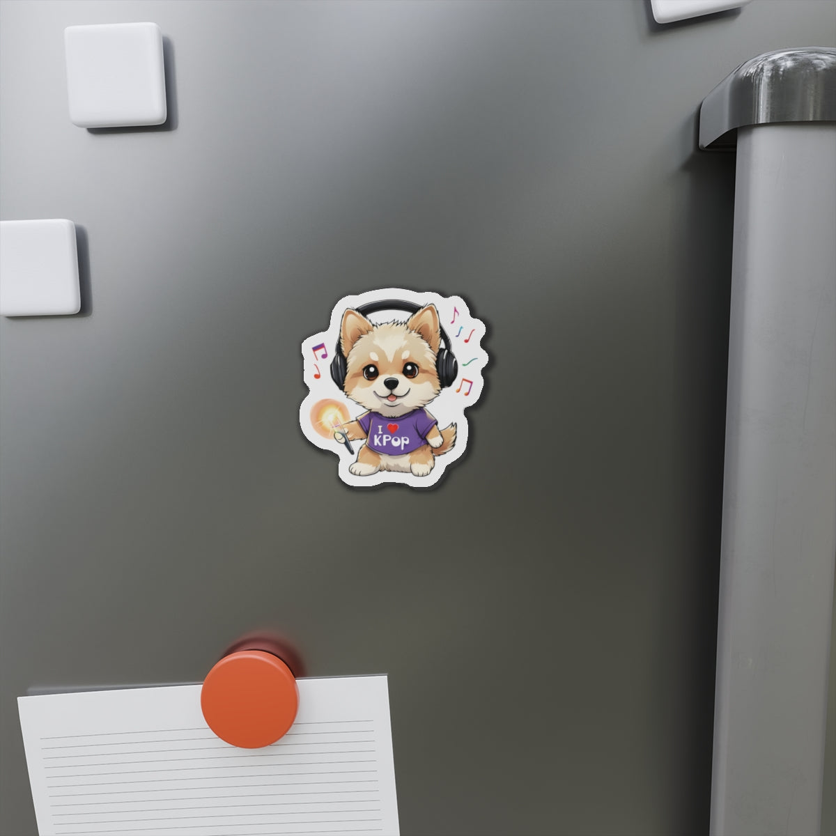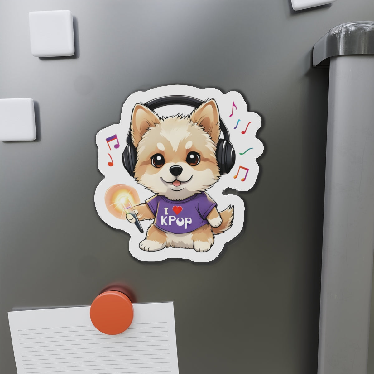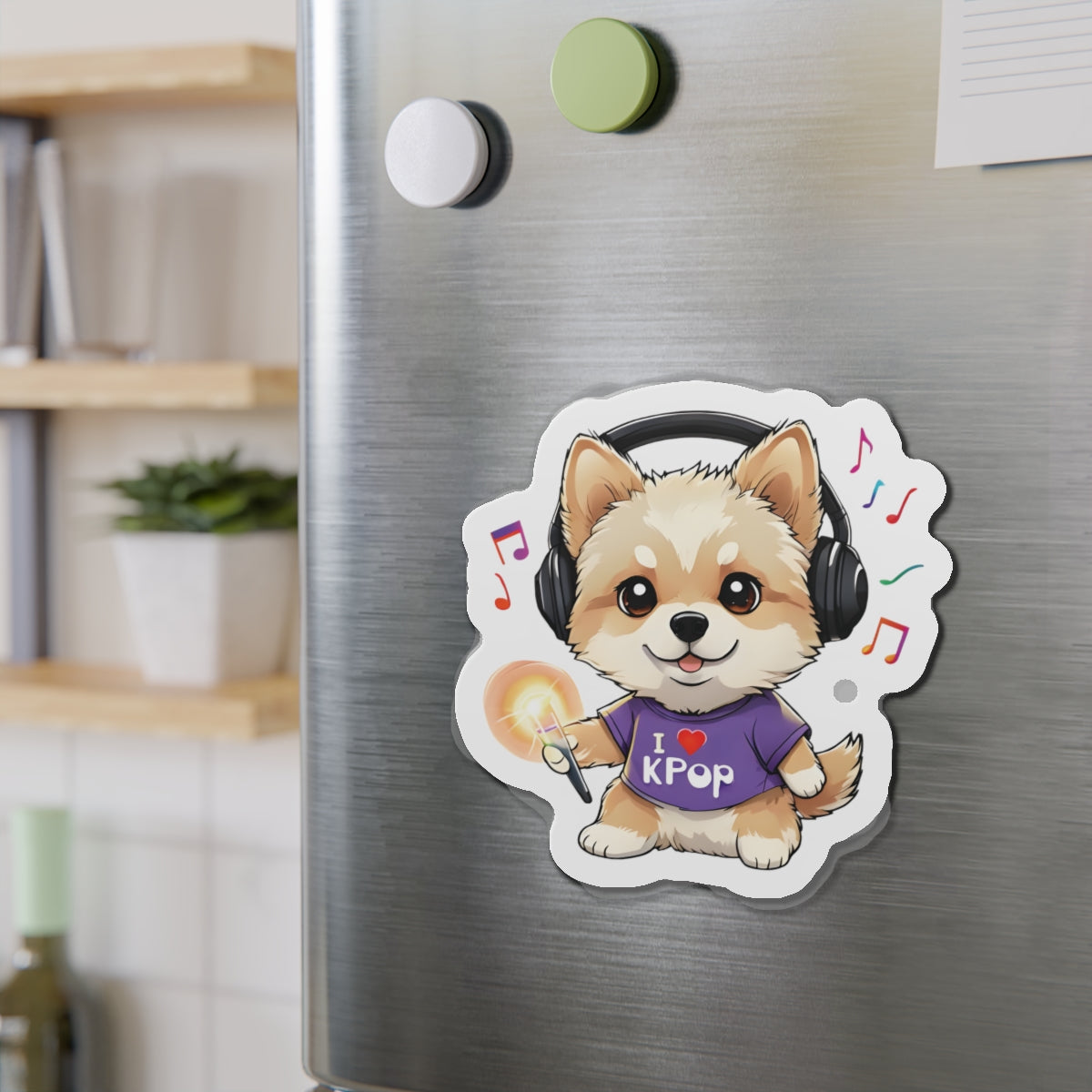 Dog Kpop Fan Holding Lightstick Magnet - Kpop General