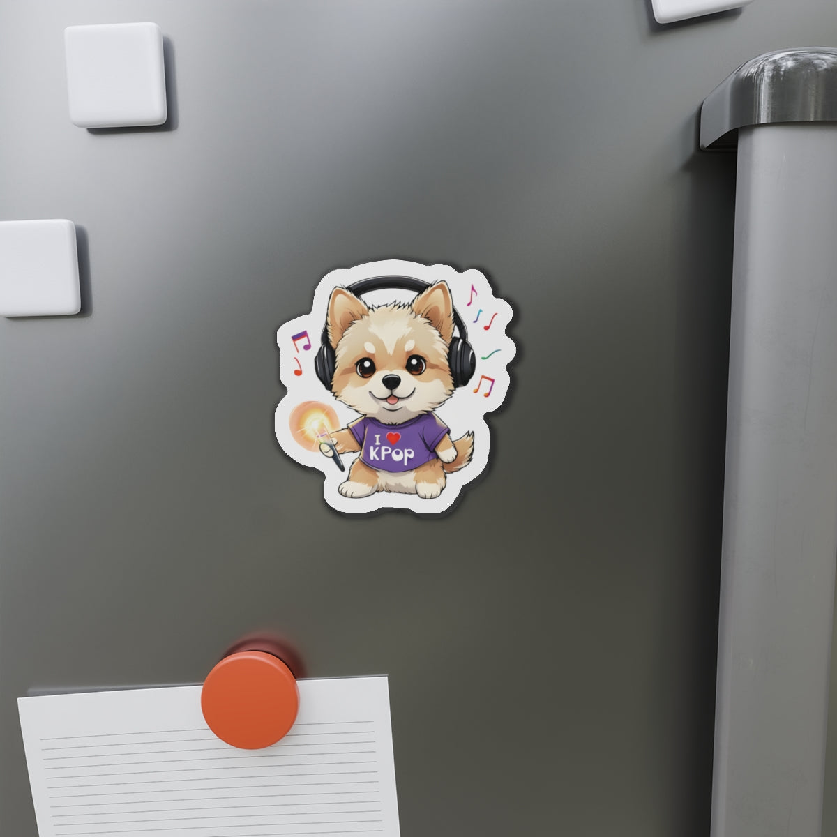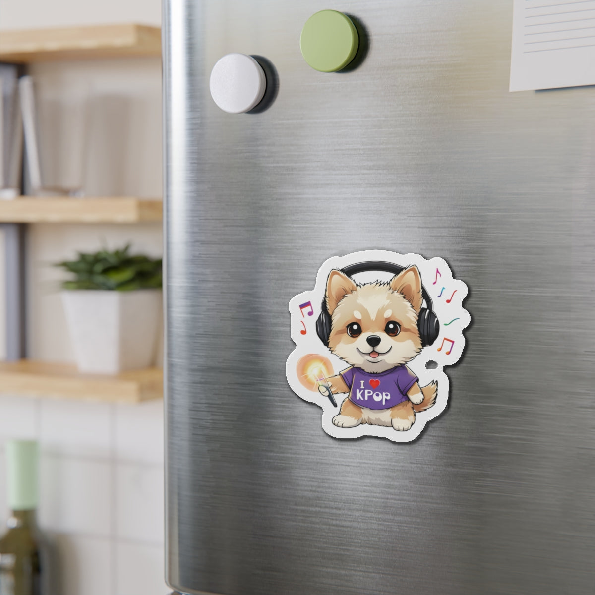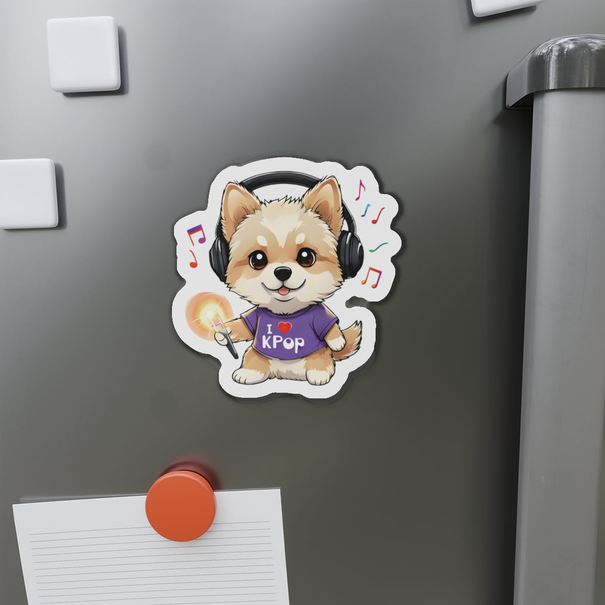 Dog Kpop Fan Holding Lightstick Magnet - Kpop General