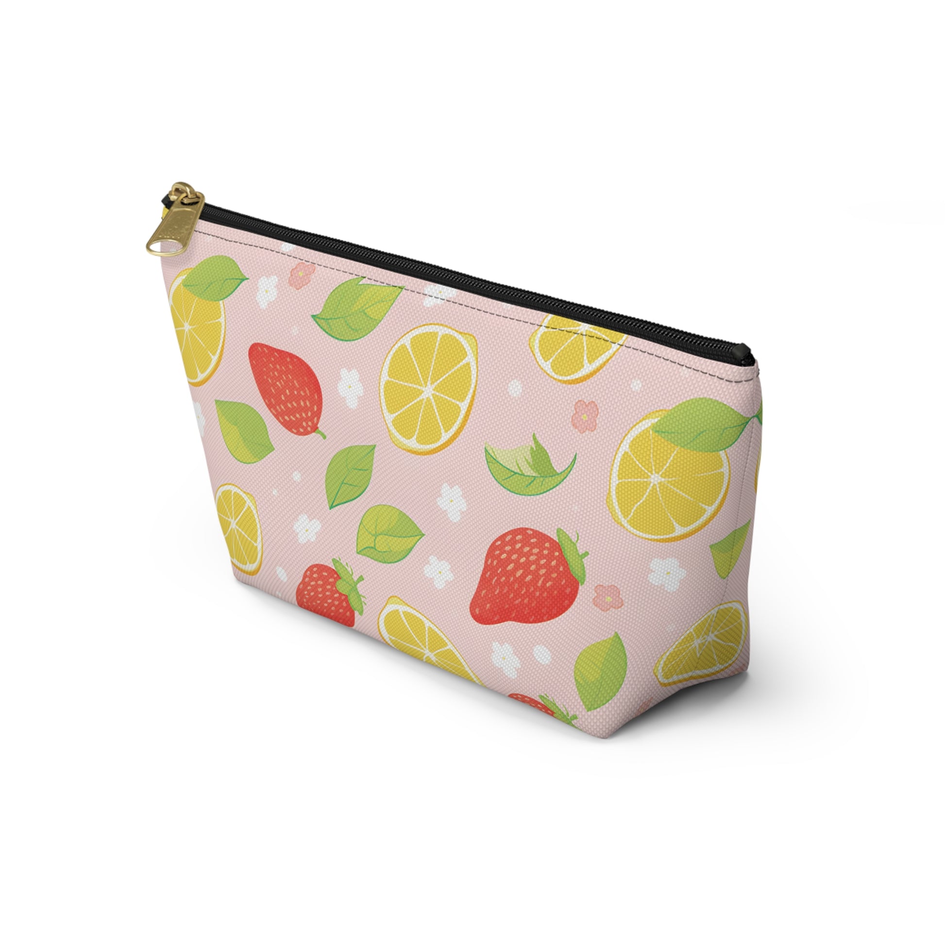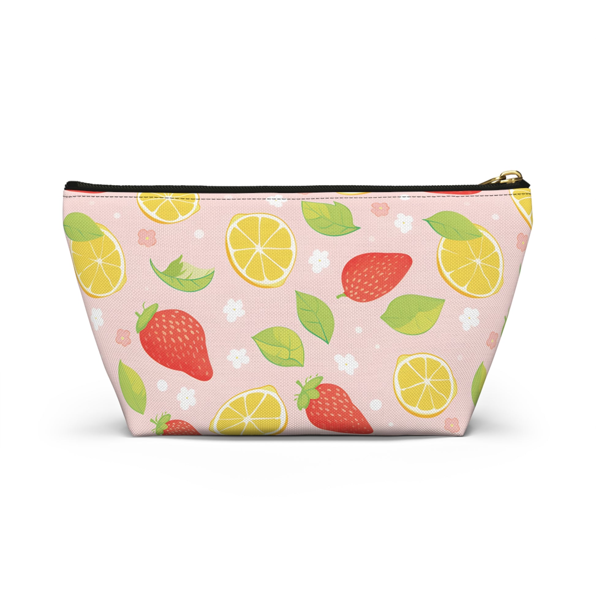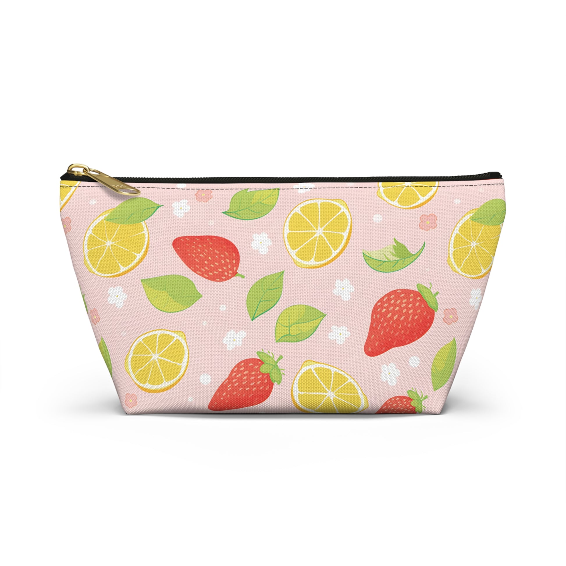 This vibrant fruit themed accessory pouch is perfect for organizing makeup, toiletries, or art supplies. Featuring a playful fruit pattern, it adds a pop of color to your everyday essentials. Whether you're using it as a fun pencil case, travel organizer, or coin purse, this pouch is ideal for fruit lovers. It also makes a great birthday present, or a thoughtful surprise for anyone who adores strawberries, lemons or cute fruit designs.