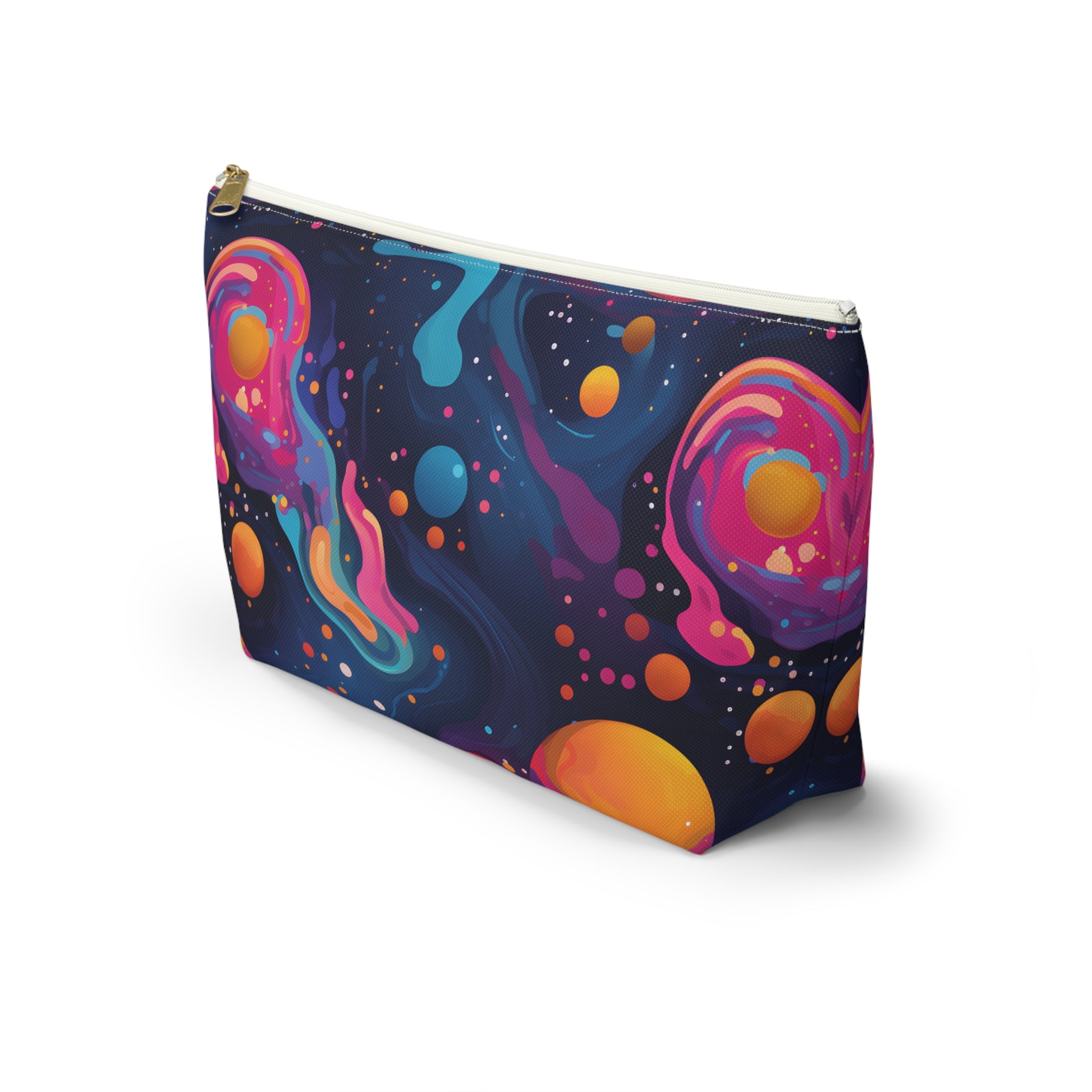 This galaxy-themed accessory pouch features a sleek design with stars, planets, and cosmic patterns. Perfect for travel, it can hold makeup, toiletries, or rave essentials. Use it as a pencil case, coin purse, or kids snack pouch. A practical and stylish gift for space lovers, this versatile pouch adds a touch of the universe to your everyday essentials.