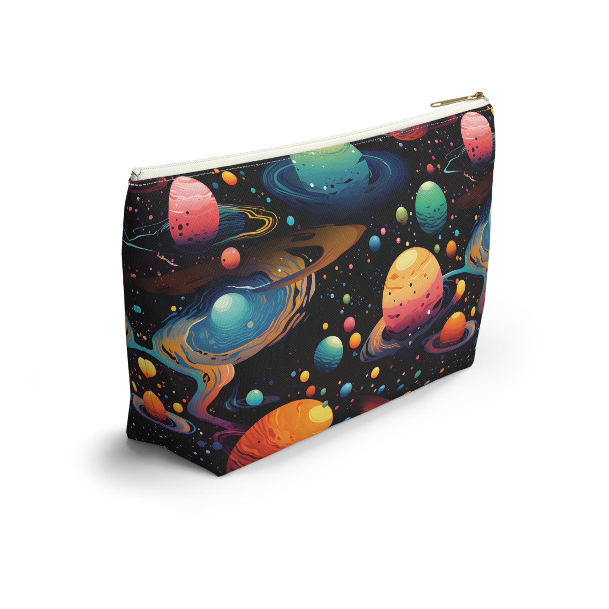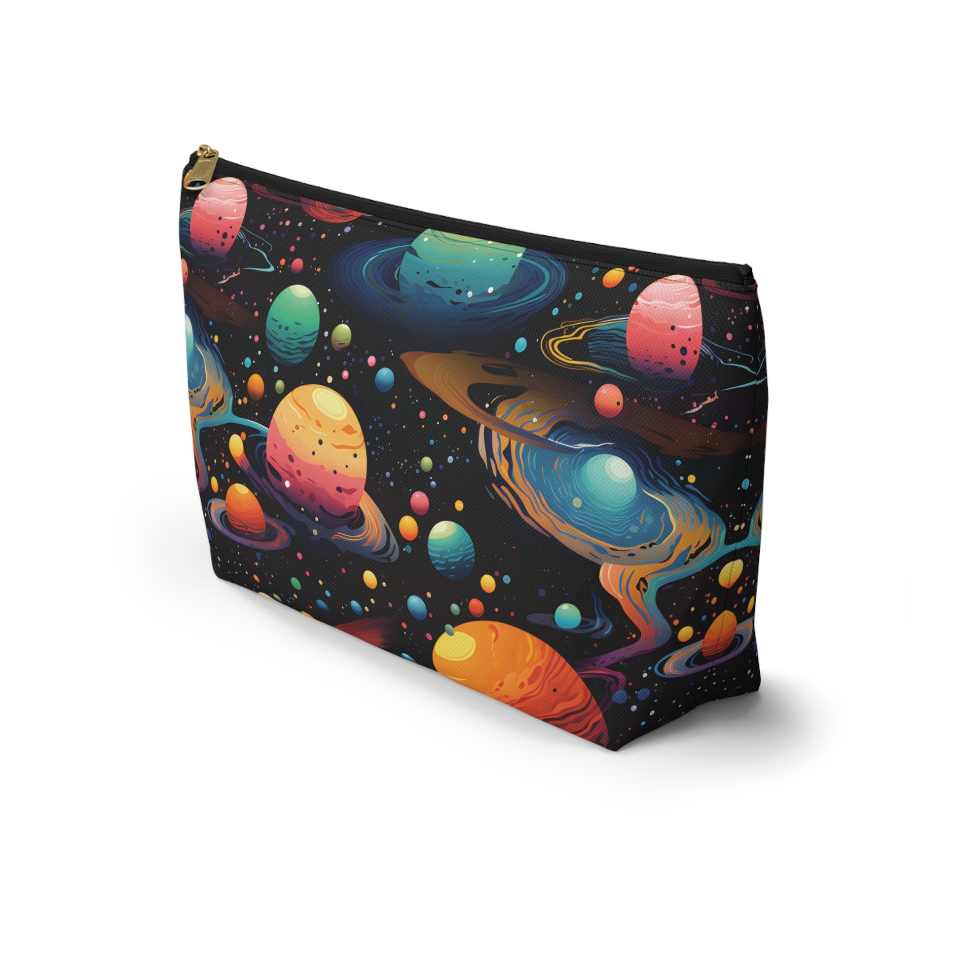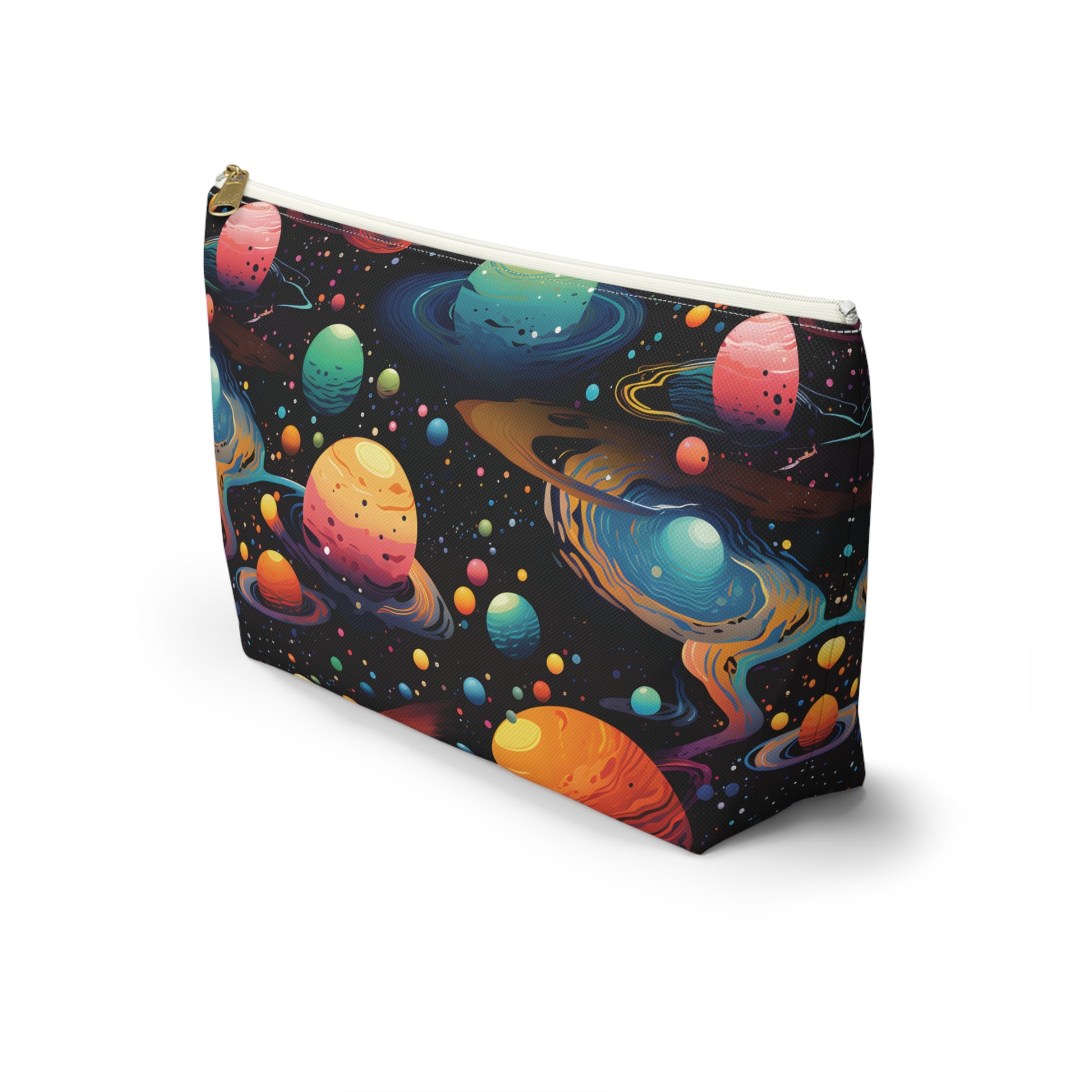 This galaxy-themed accessory pouch features a sleek design with stars, planets, and cosmic patterns. Perfect for travel, it can hold makeup, toiletries, or rave essentials. Use it as a pencil case, coin purse, or kids snack pouch. A practical and stylish gift for space lovers, this versatile pouch adds a touch of the universe to your everyday essentials.