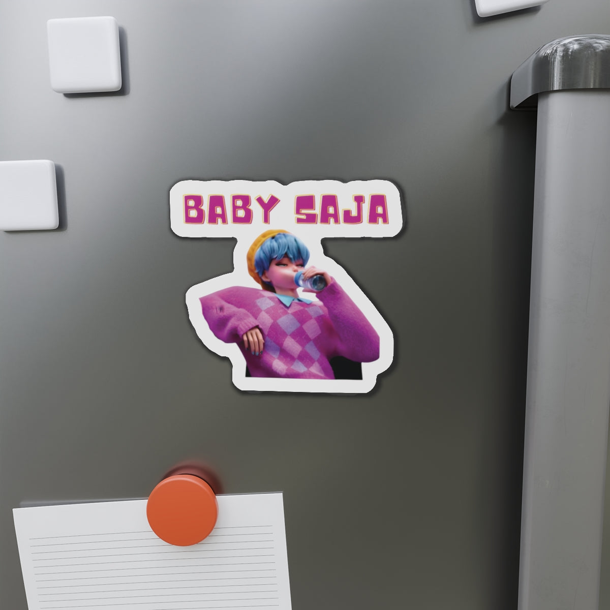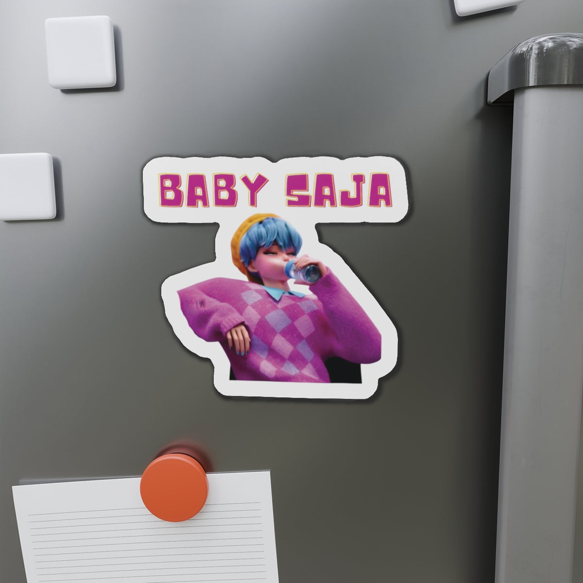 Show off your love for Kpops newest boy group sensation, The Saja Boys, with this stylish magnet! This Kpop Demon Hunters merch makes an ideal gift for Pride fans. Celebrate Jinu, Abby, Romance, Mystery, and Baby Sajas global group success by using this as a car magnet, fridge magnet, whiteboard magnet, school locker magnet or any magnetic surface. Add this to your growing kpop collection and help keep Gwi Ma strong!