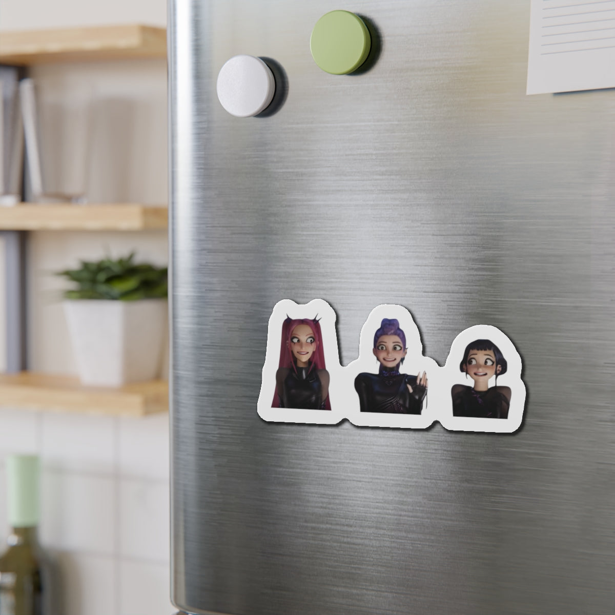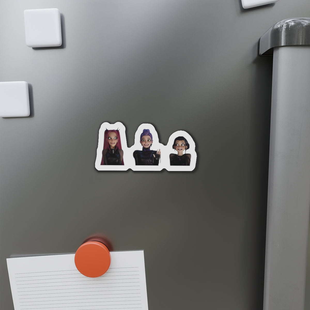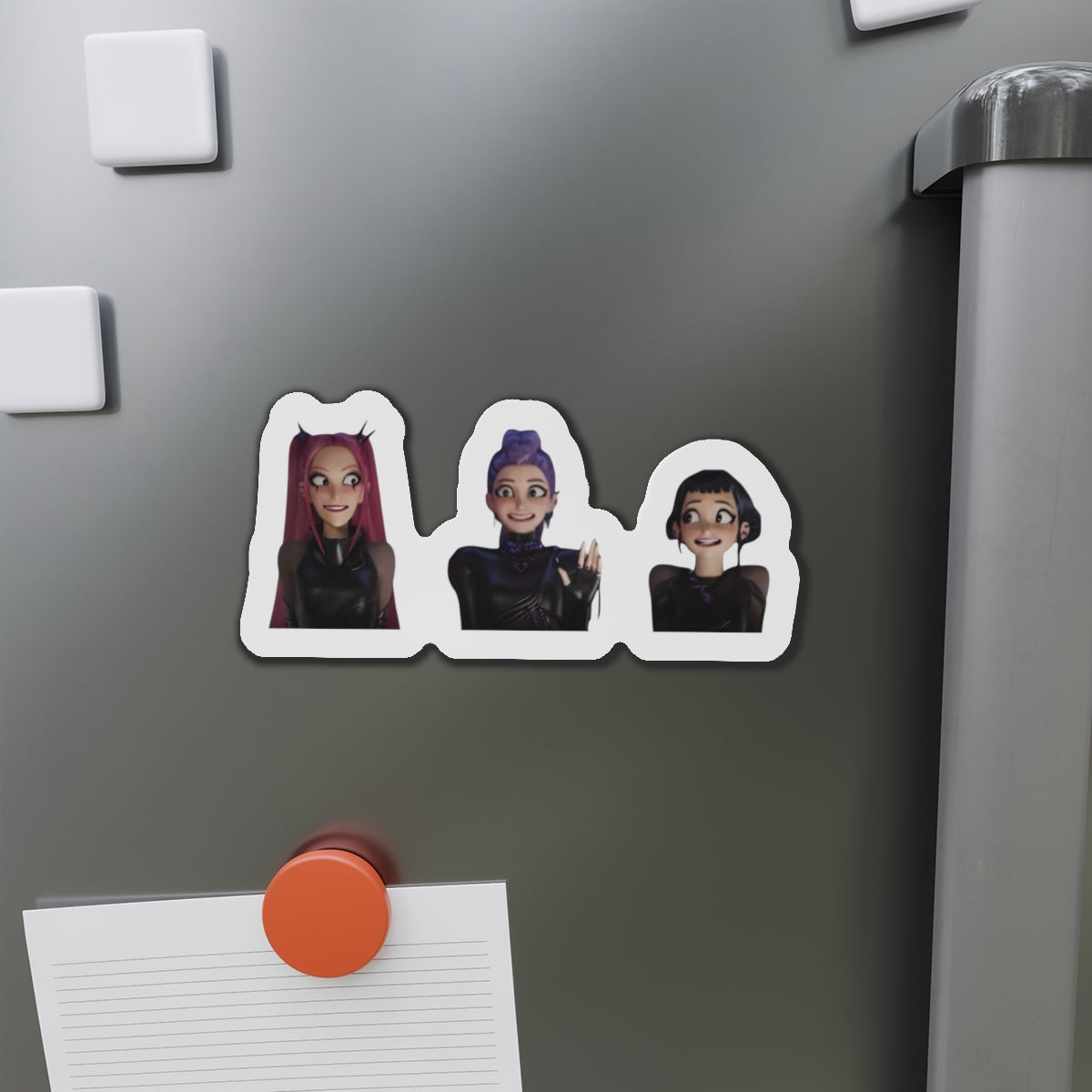 Show off your love for Kpops newest girl group sensation, Huntrix, with this stylish magnet! This Kpop Demon Hunters merch makes an ideal gift for Huntrix fans. Celebrate Rumi, Mira, and Zoeys global group success by using this as a car magnet, fridge magnet, whiteboard magnet, school locker magnet or any magnetic surface. Add this to your growing kpop collection and help keep the Honmoon strong!