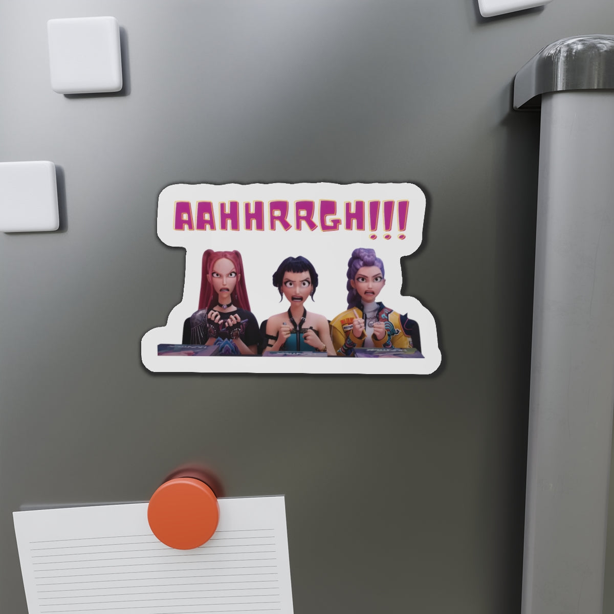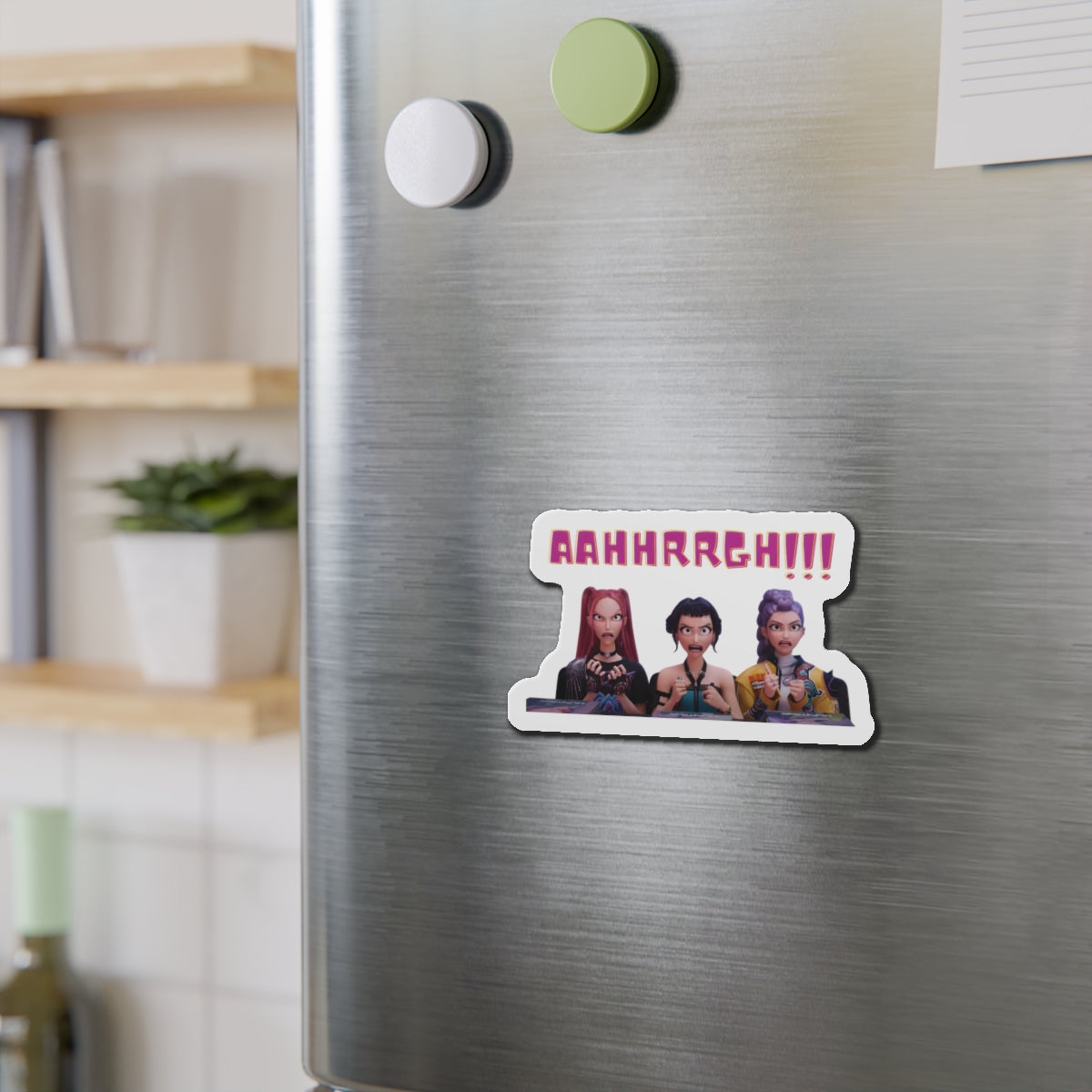 Show off your love for Kpops newest girl group sensation, Huntrix, with this stylish magnet! This Kpop Demon Hunters merch makes an ideal gift for Huntrix fans. Celebrate Rumi, Mira, and Zoeys global group success by using this as a car magnet, fridge magnet, whiteboard magnet, school locker magnet or any magnetic surface. Add this to your growing kpop collection and help keep the Honmoon strong!