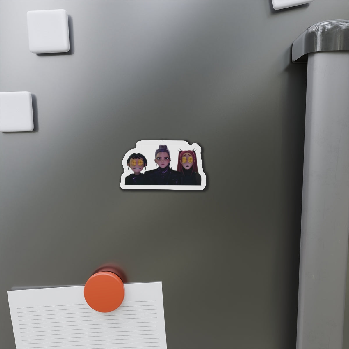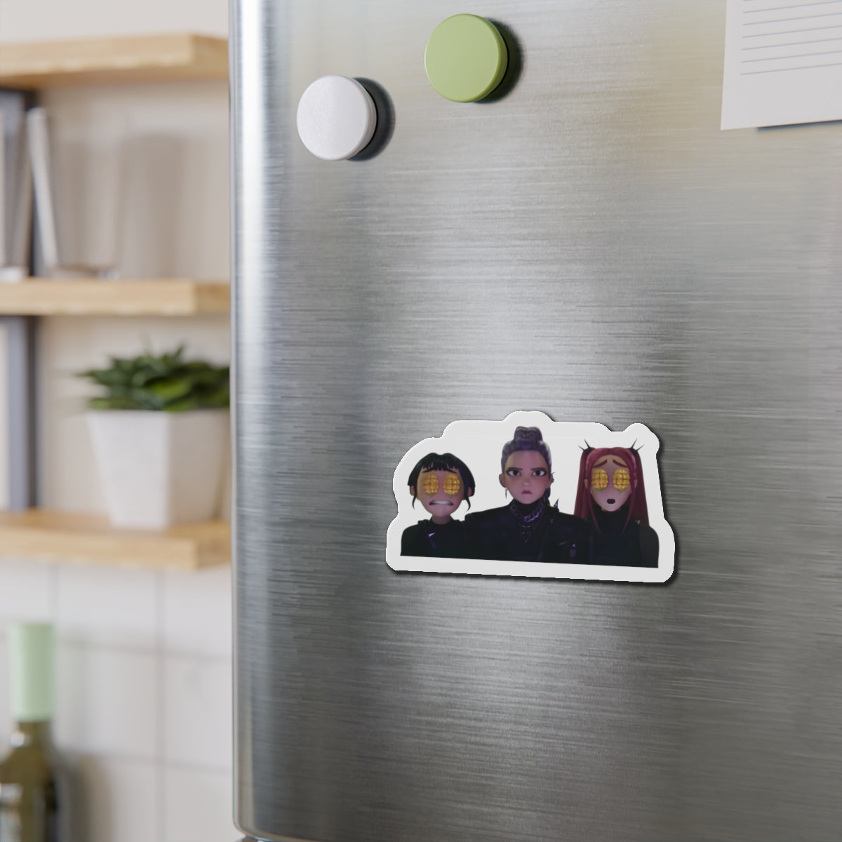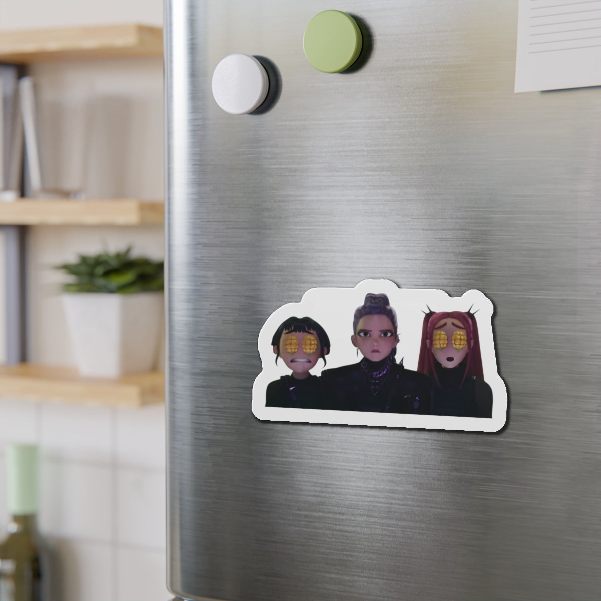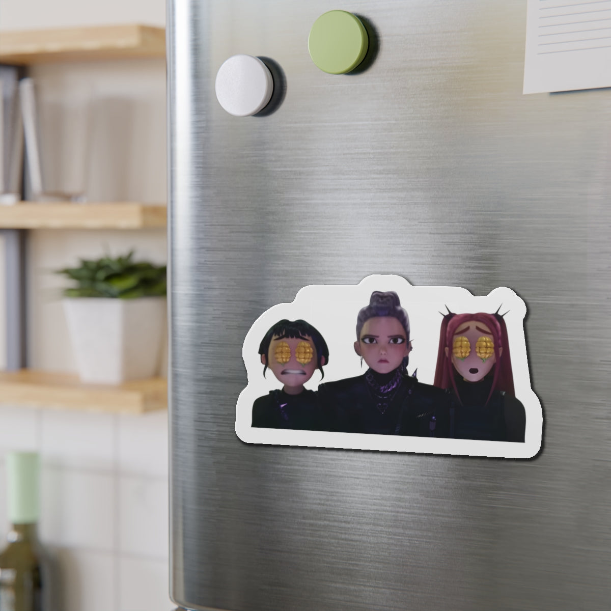 Show off your love for Kpops newest girl group sensation, Huntrix, with this stylish magnet! This Kpop Demon Hunters merch makes an ideal gift for Huntrix fans. Celebrate Rumi, Mira, and Zoeys global group success by using this as a car magnet, fridge magnet, whiteboard magnet, school locker magnet or any magnetic surface. Add this to your growing kpop collection and help keep the Honmoon strong!