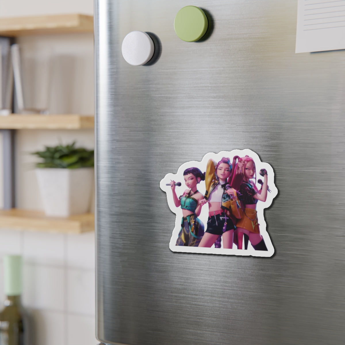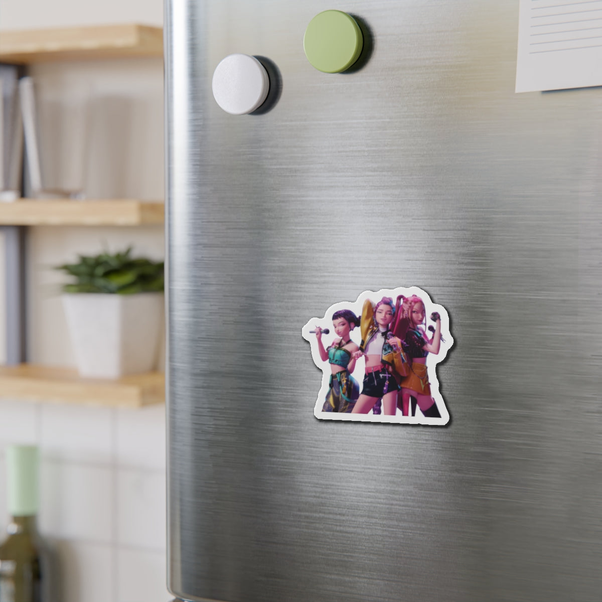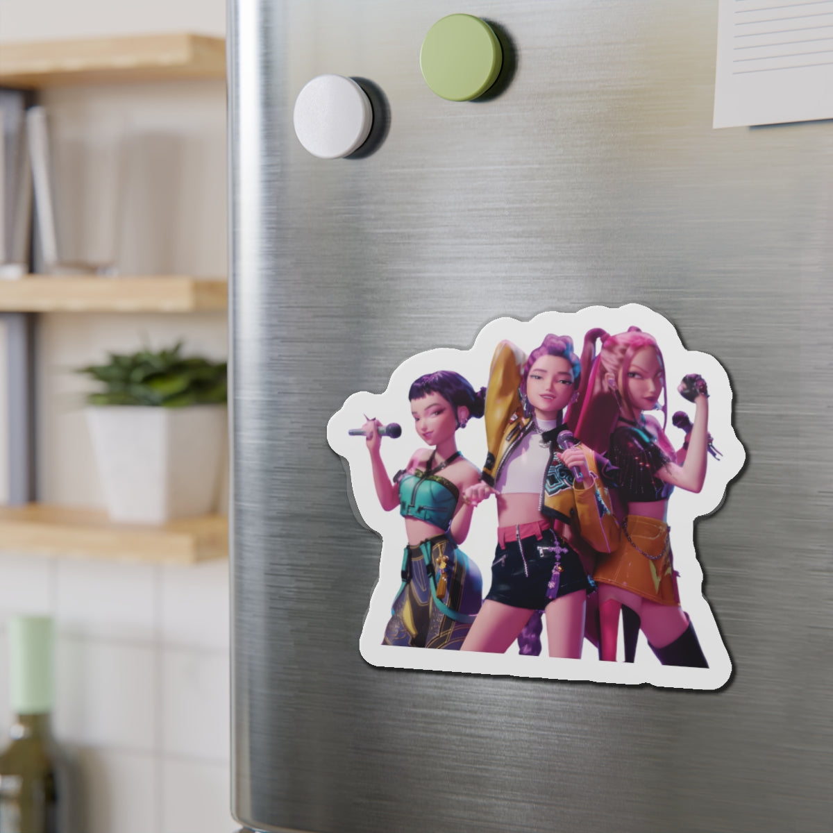 Show off your love for Kpops newest girl group sensation, Huntrix, with this stylish magnet! This Kpop Demon Hunters merch makes an ideal gift for Huntrix fans. Celebrate Rumi, Mira, and Zoeys global group success by using this as a car magnet, fridge magnet, whiteboard magnet, school locker magnet or any magnetic surface. Add this to your growing kpop collection and help keep the Honmoon strong!
