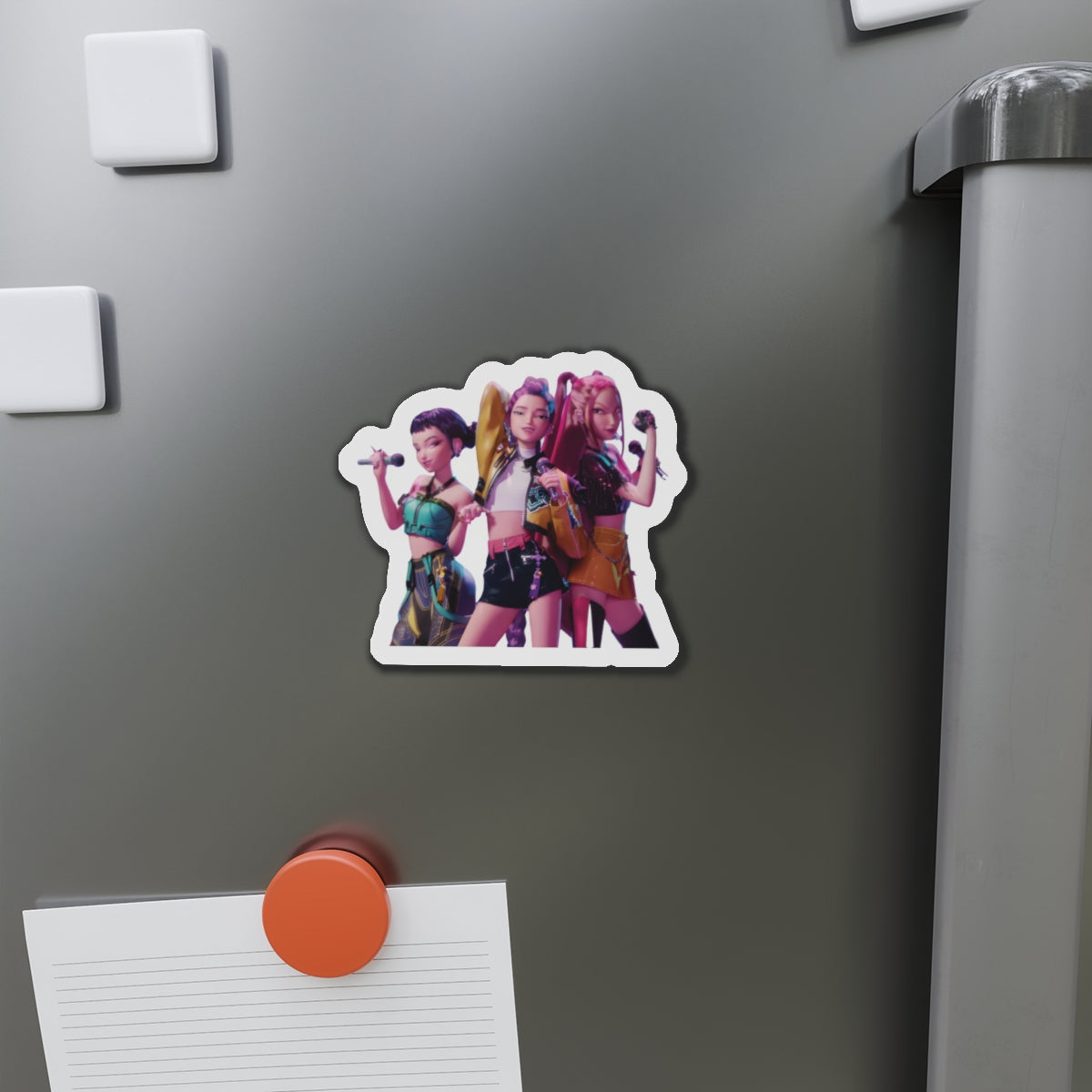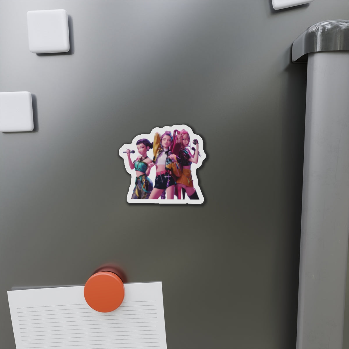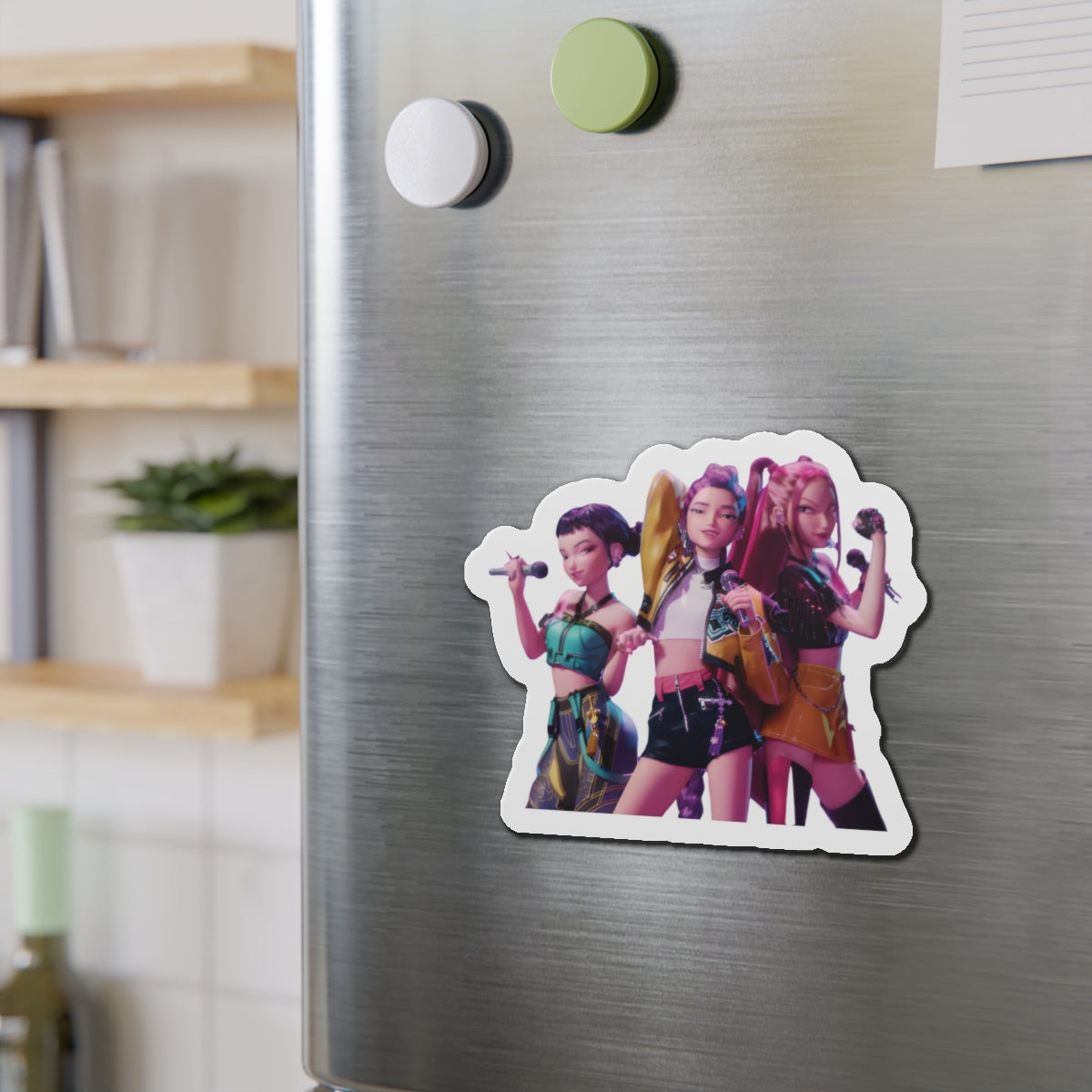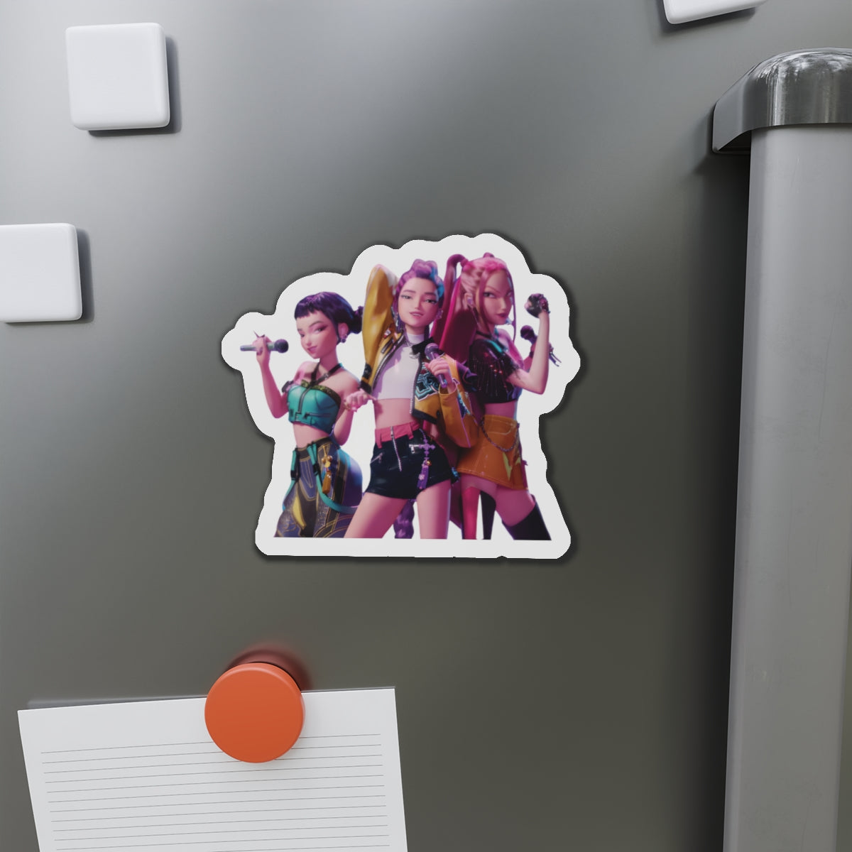 Show off your love for Kpops newest girl group sensation, Huntrix, with this stylish magnet! This Kpop Demon Hunters merch makes an ideal gift for Huntrix fans. Celebrate Rumi, Mira, and Zoeys global group success by using this as a car magnet, fridge magnet, whiteboard magnet, school locker magnet or any magnetic surface. Add this to your growing kpop collection and help keep the Honmoon strong!