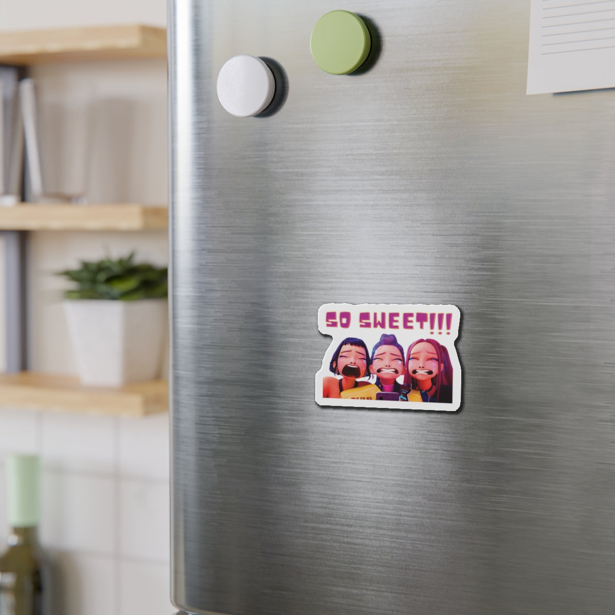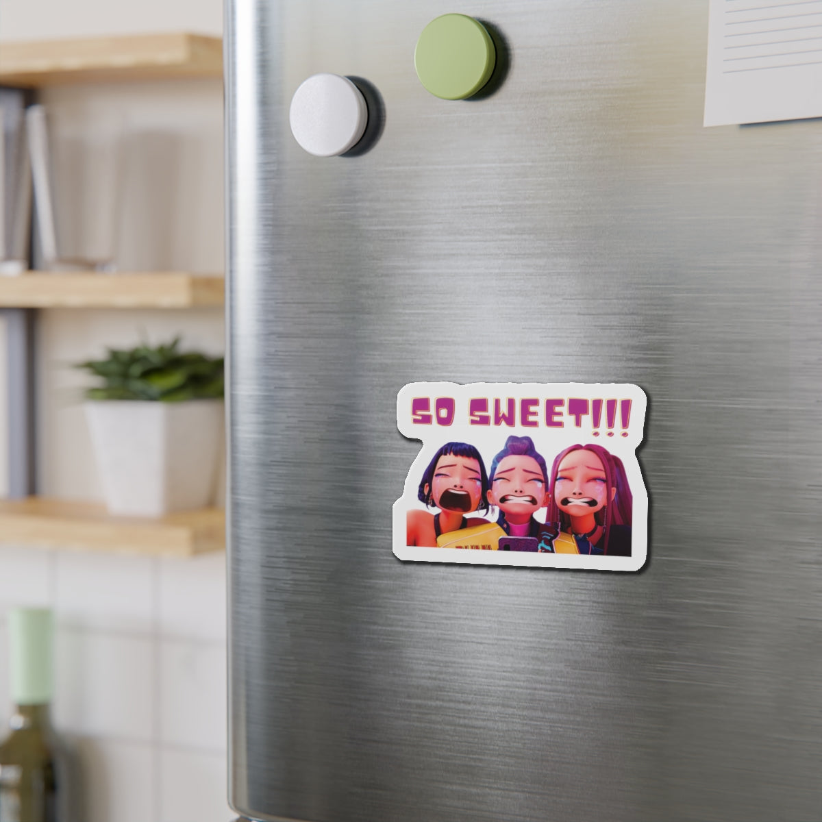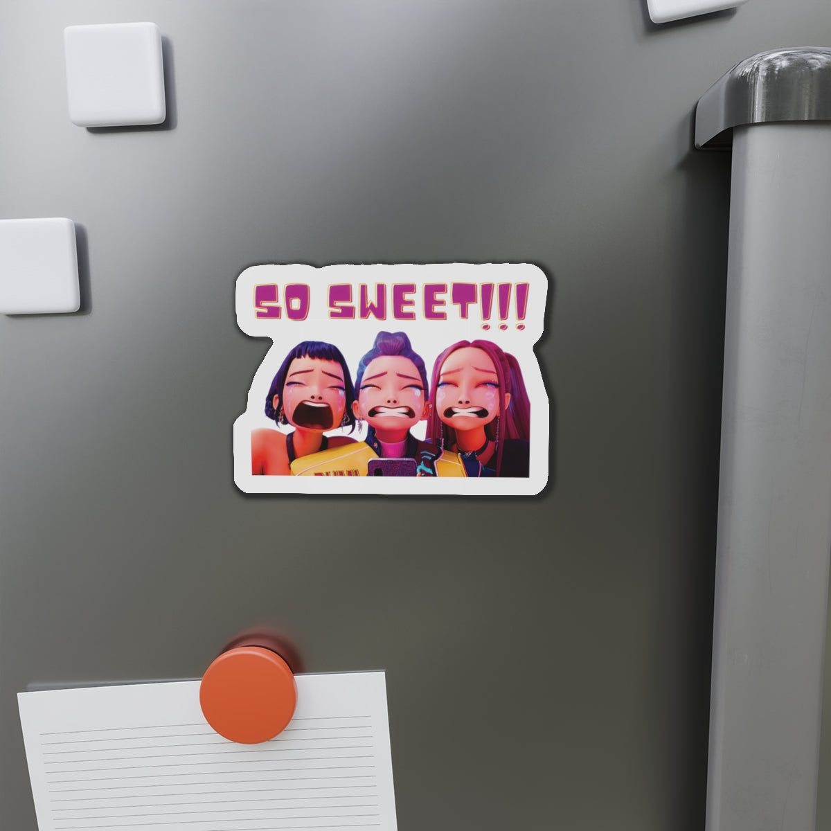 Show off your love for Kpops newest girl group sensation, Huntrix, with this stylish magnet! This Kpop Demon Hunters merch makes an ideal gift for Huntrix fans. Celebrate Rumi, Mira, and Zoeys global group success by using this as a car magnet, fridge magnet, whiteboard magnet, school locker magnet or any magnetic surface. Add this to your growing kpop collection and help keep the Honmoon strong!