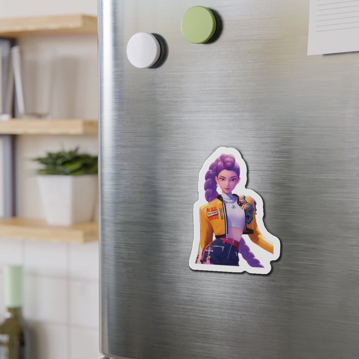 Show off your love for Kpops newest girl group sensation, Huntrix, with this stylish magnet! This Kpop Demon Hunters merch makes an ideal gift for Huntrix fans. Celebrate Rumi, Mira, and Zoeys global group success by using this as a car magnet, fridge magnet, whiteboard magnet, school locker magnet or any magnetic surface. Add this to your growing kpop collection and help keep the Honmoon strong!