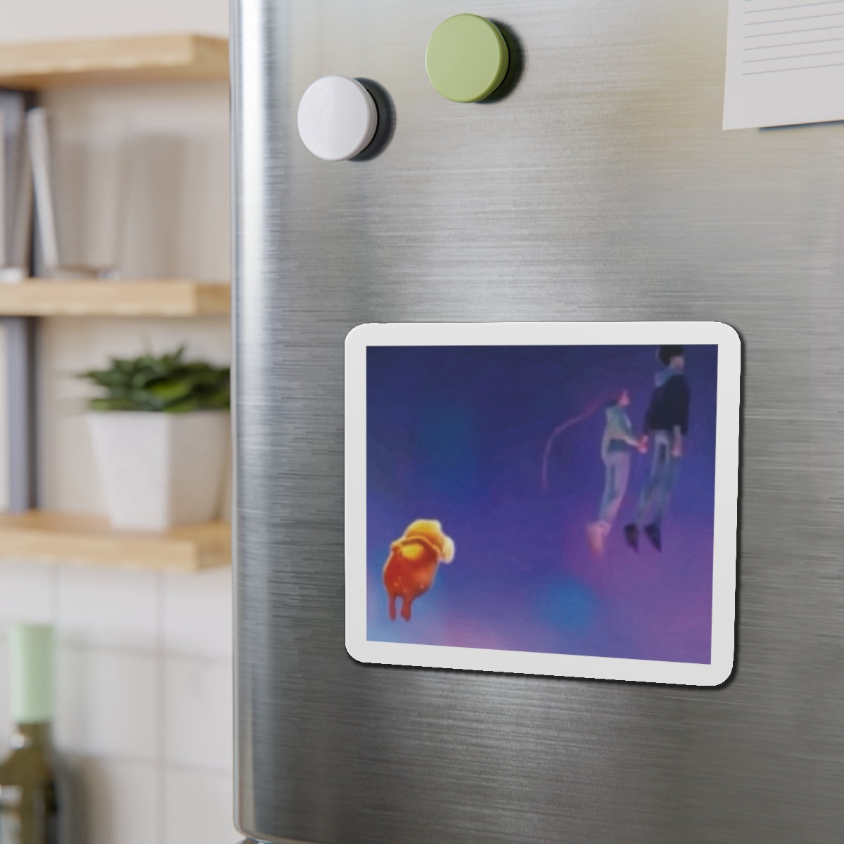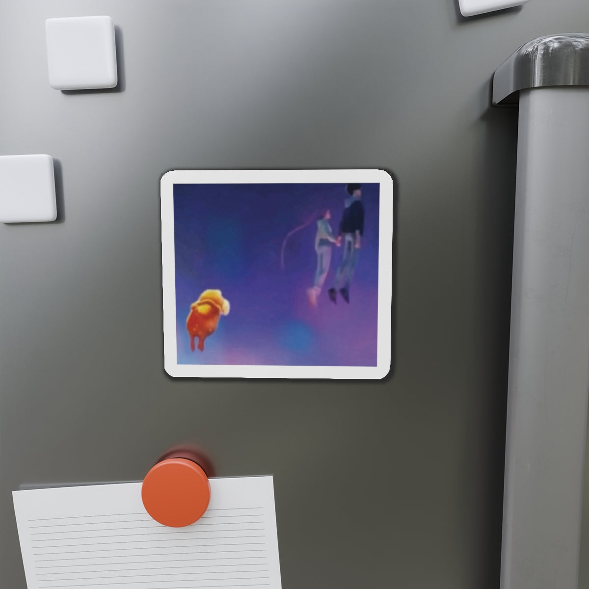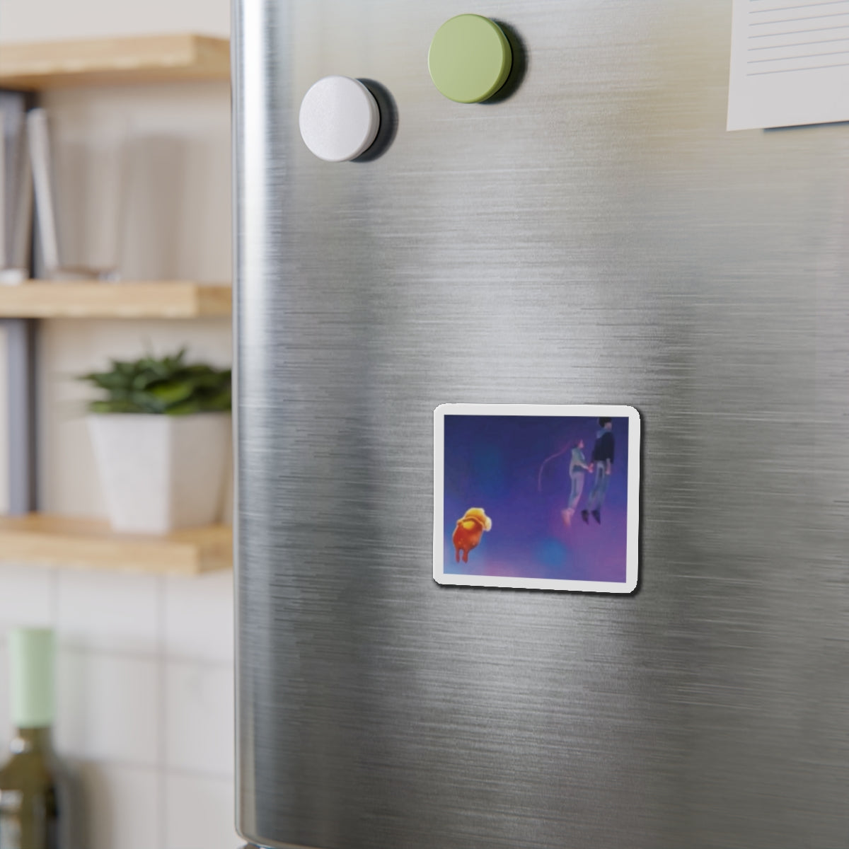 Show off your love for Kpops newest girl group sensation, Huntrix, with this stylish magnet! This Kpop Demon Hunters merch makes a great gift for lovers of the movie. Celebrate the Rumi and Jinu ship, Rujinu, by using this as a car magnet, fridge magnet, whiteboard magnet, school locker magnet or any magnetic surface. Add this to your growing kpop collection and help keep the Honmoon strong!