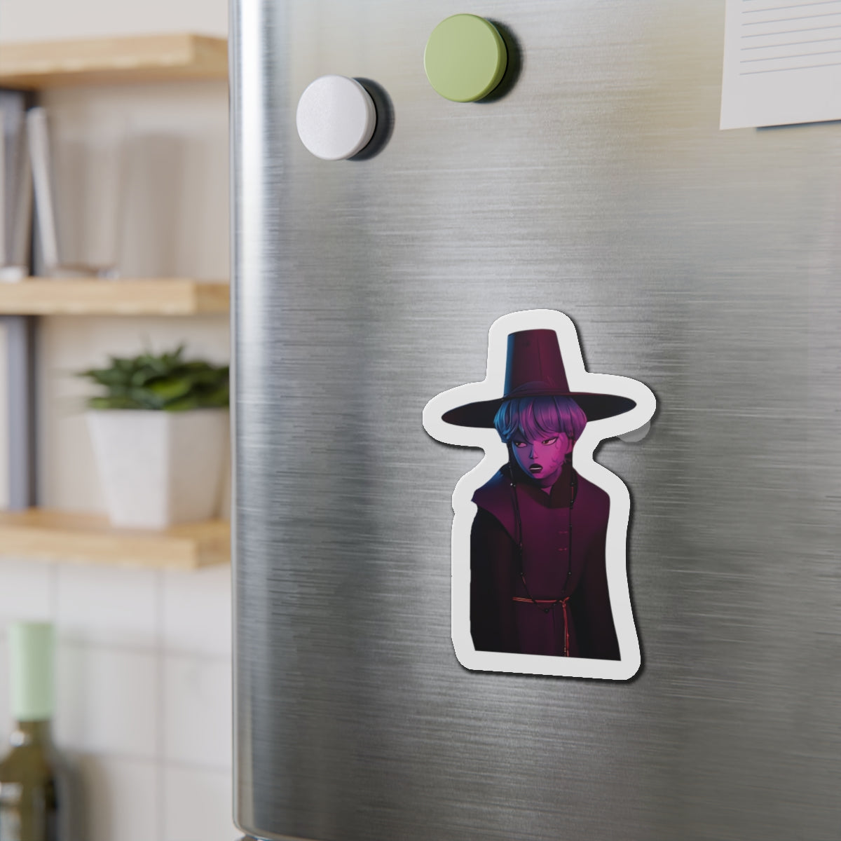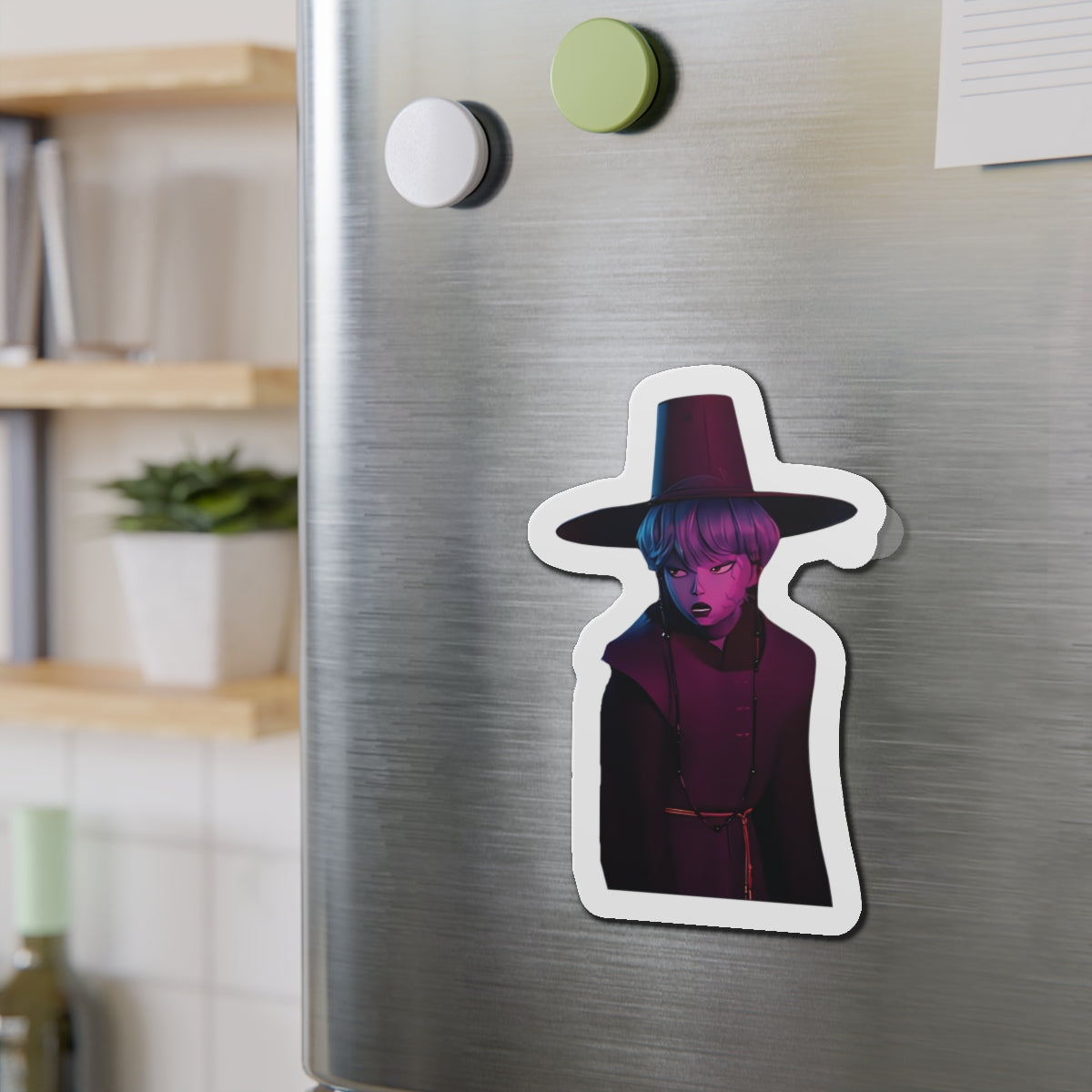 Show off your love for Kpops newest boy group sensation, The Saja Boys, with this stylish magnet! This Kpop Demon Hunters merch makes an ideal gift for Pride fans. Celebrate Jinu, Abby, Romance, Mystery, and Baby Sajas global group success by using this as a car magnet, fridge magnet, whiteboard magnet, school locker magnet or any magnetic surface. Add this to your growing kpop collection and help keep Gwi Ma strong!