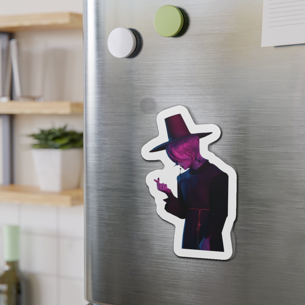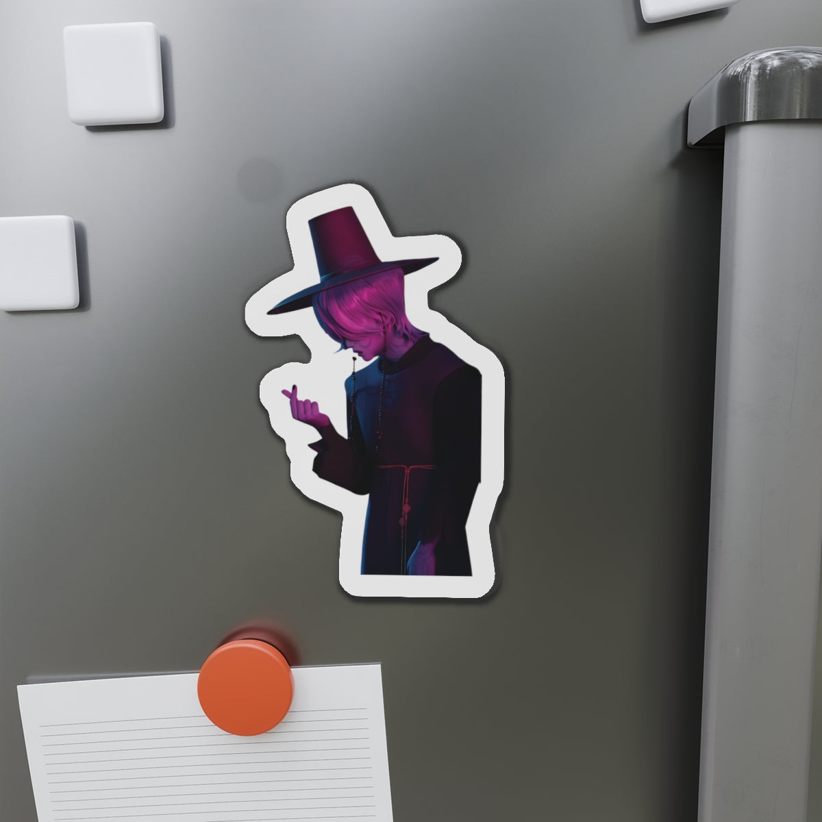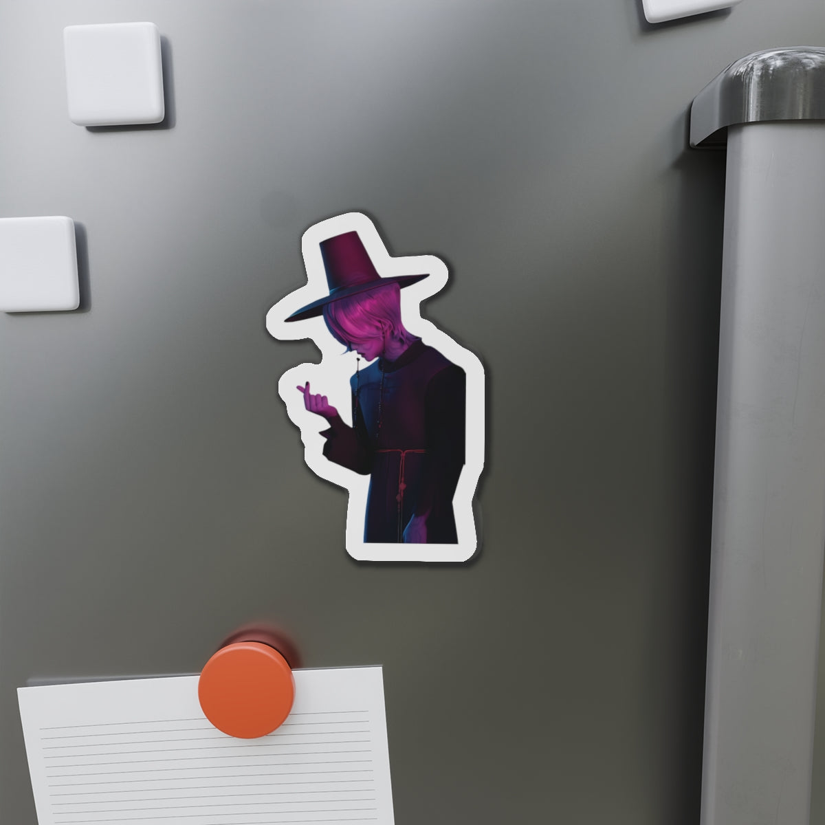 Show off your love for Kpops newest boy group sensation, The Saja Boys, with this stylish magnet! This Kpop Demon Hunters merch makes an ideal gift for Pride fans. Celebrate Jinu, Abby, Romance, Mystery, and Baby Sajas global group success by using this as a car magnet, fridge magnet, whiteboard magnet, school locker magnet or any magnetic surface. Add this to your growing kpop collection and help keep Gwi Ma strong!