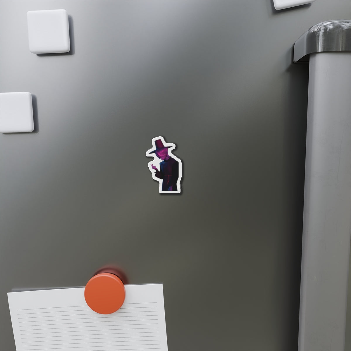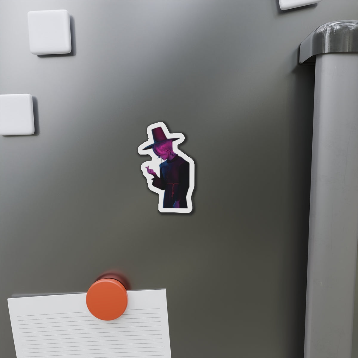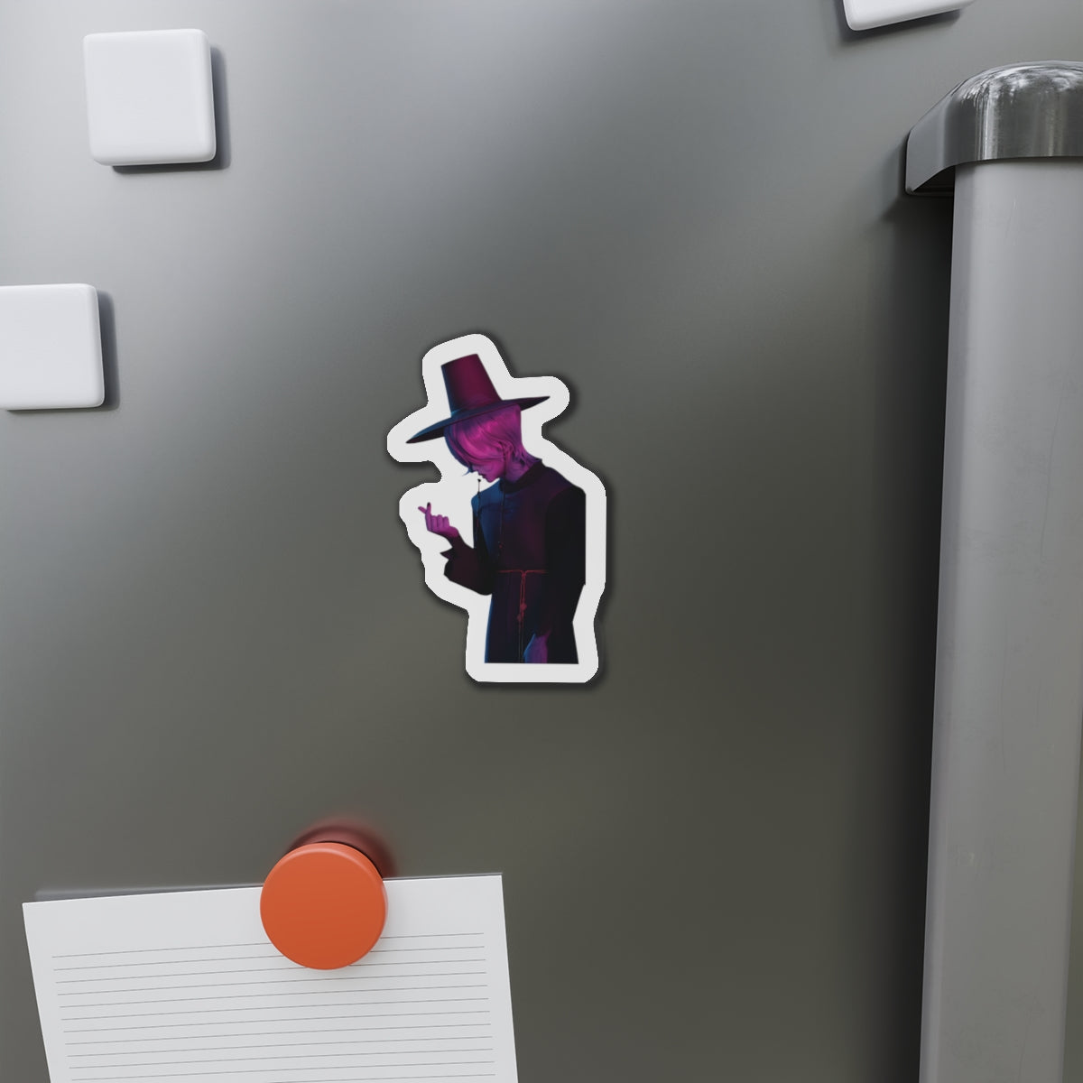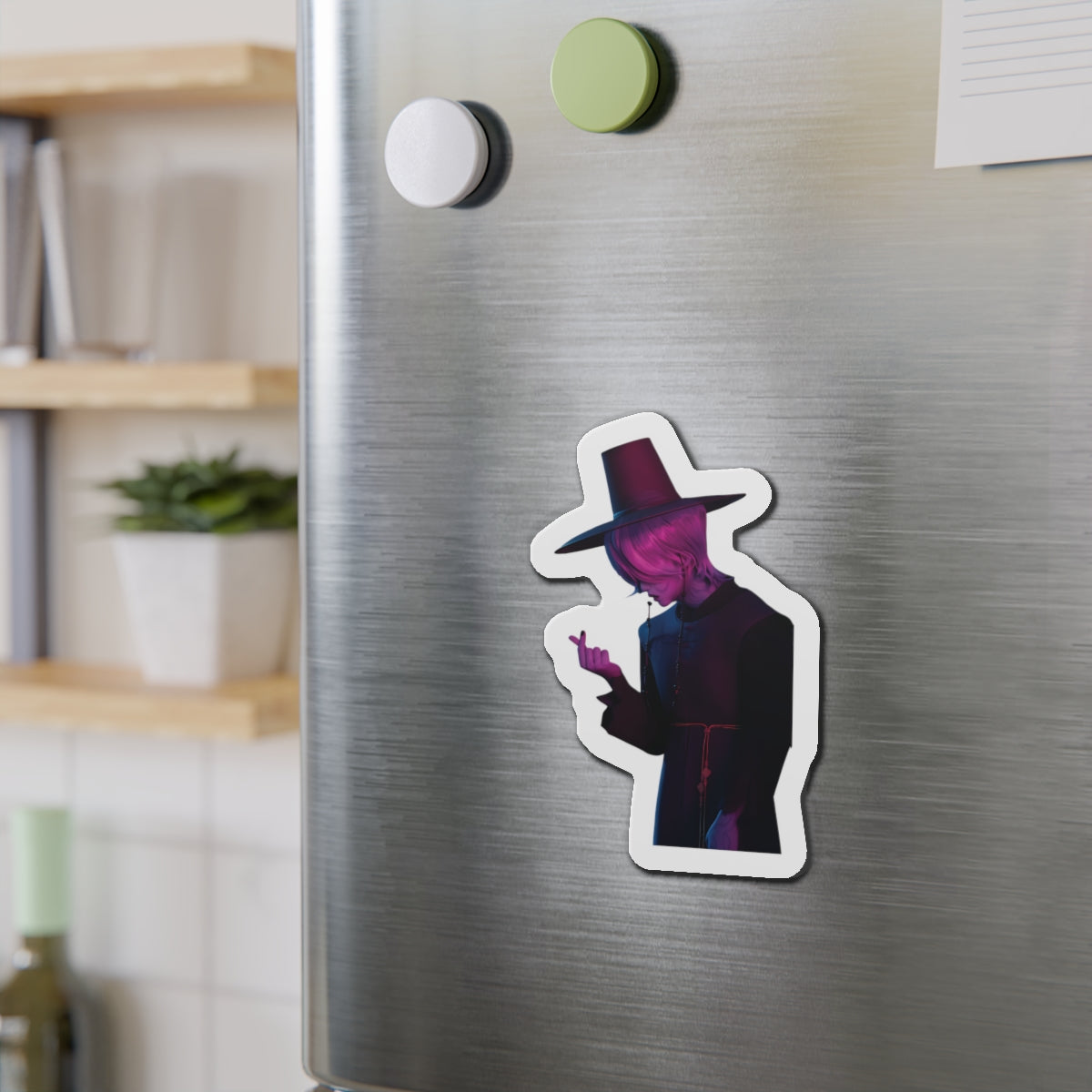 Show off your love for Kpops newest boy group sensation, The Saja Boys, with this stylish magnet! This Kpop Demon Hunters merch makes an ideal gift for Pride fans. Celebrate Jinu, Abby, Romance, Mystery, and Baby Sajas global group success by using this as a car magnet, fridge magnet, whiteboard magnet, school locker magnet or any magnetic surface. Add this to your growing kpop collection and help keep Gwi Ma strong!