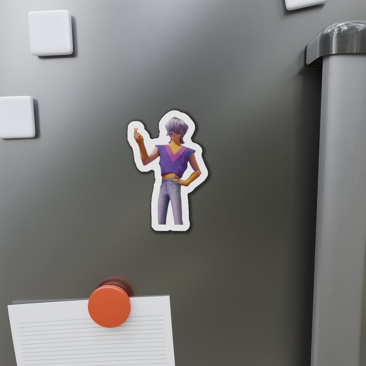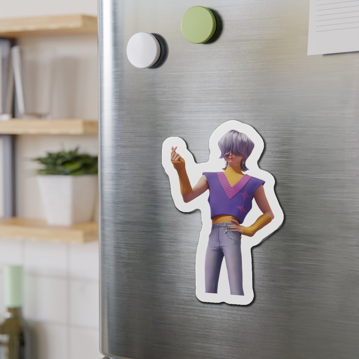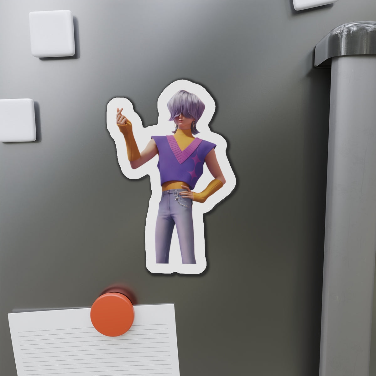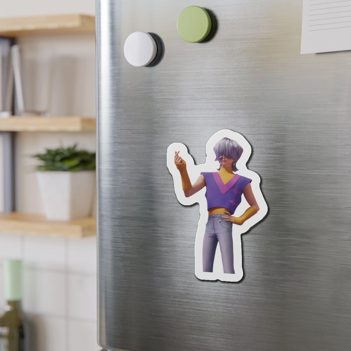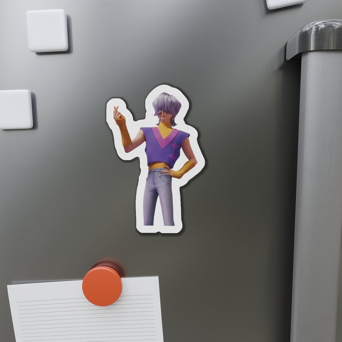 Show off your love for Kpops newest boy group sensation, The Saja Boys, with this stylish magnet! This Kpop Demon Hunters merch makes an ideal gift for Pride fans. Celebrate Jinu, Abby, Romance, Mystery, and Baby Sajas global group success by using this as a car magnet, fridge magnet, whiteboard magnet, school locker magnet or any magnetic surface. Add this to your growing kpop collection and help keep Gwi Ma strong!