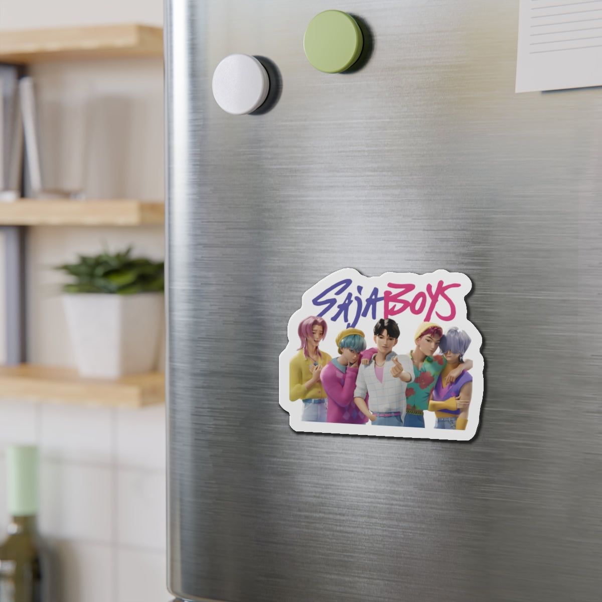 Show off your love for Kpops newest boy group sensation, The Saja Boys, with this stylish magnet! This Kpop Demon Hunters merch makes an ideal gift for Pride fans. Celebrate Jinu, Abby, Romance, Mystery, and Baby Sajas global group success by using this as a car magnet, fridge magnet, whiteboard magnet, school locker magnet or any magnetic surface. Add this to your growing kpop collection and help keep Gwi Ma strong!