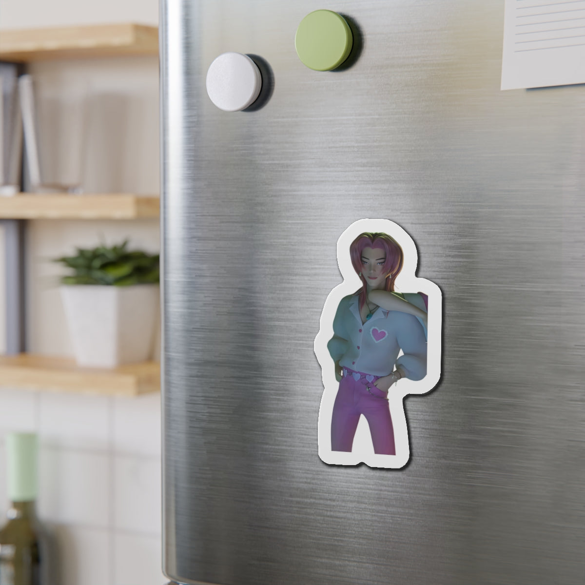Show off your love for Kpops newest boy group sensation, The Saja Boys, with this stylish magnet! This Kpop Demon Hunters merch makes an ideal gift for Pride fans. Celebrate Jinu, Abby, Romance, Mystery, and Baby Sajas global group success by using this as a car magnet, fridge magnet, whiteboard magnet, school locker magnet or any magnetic surface. Add this to your growing kpop collection and help keep Gwi Ma strong!