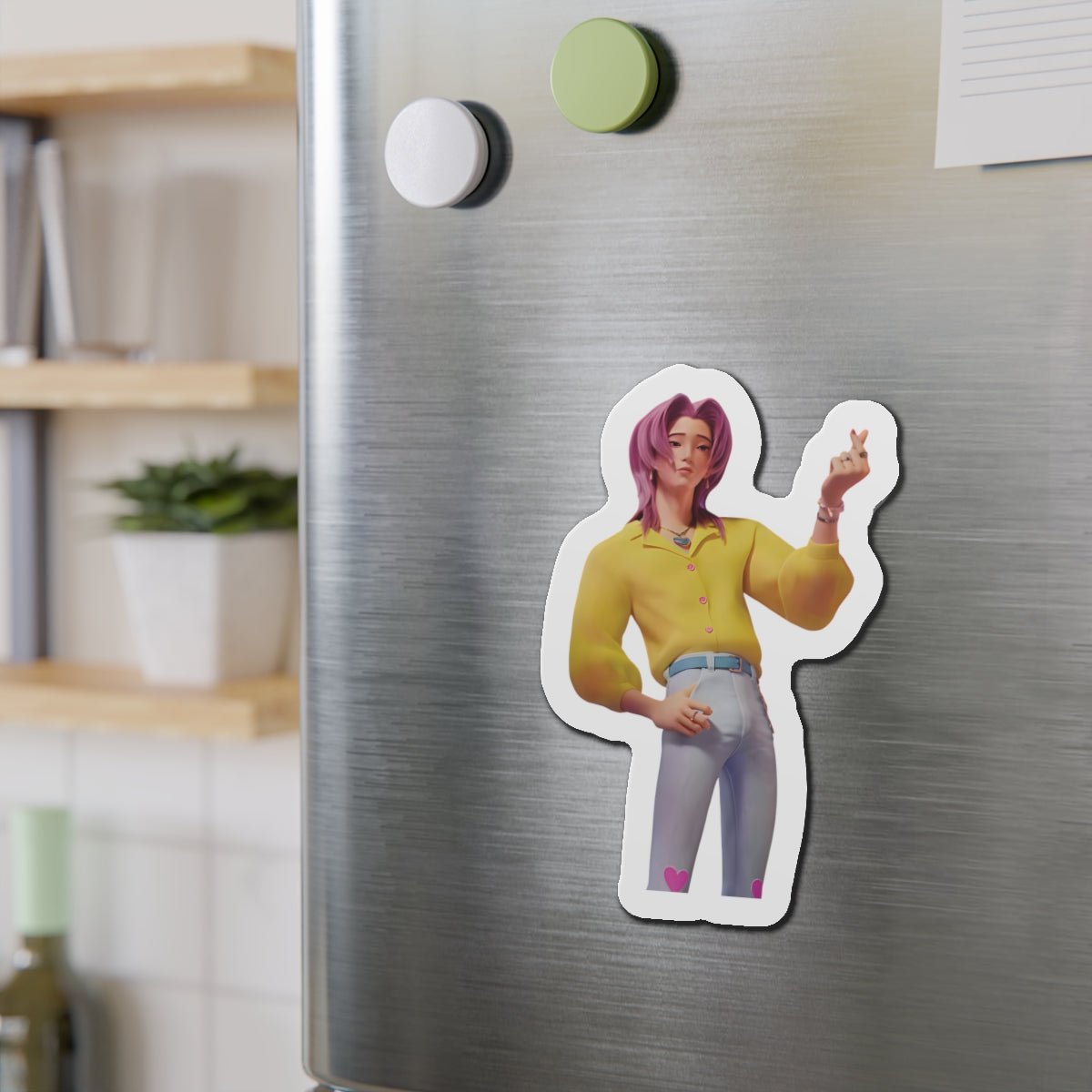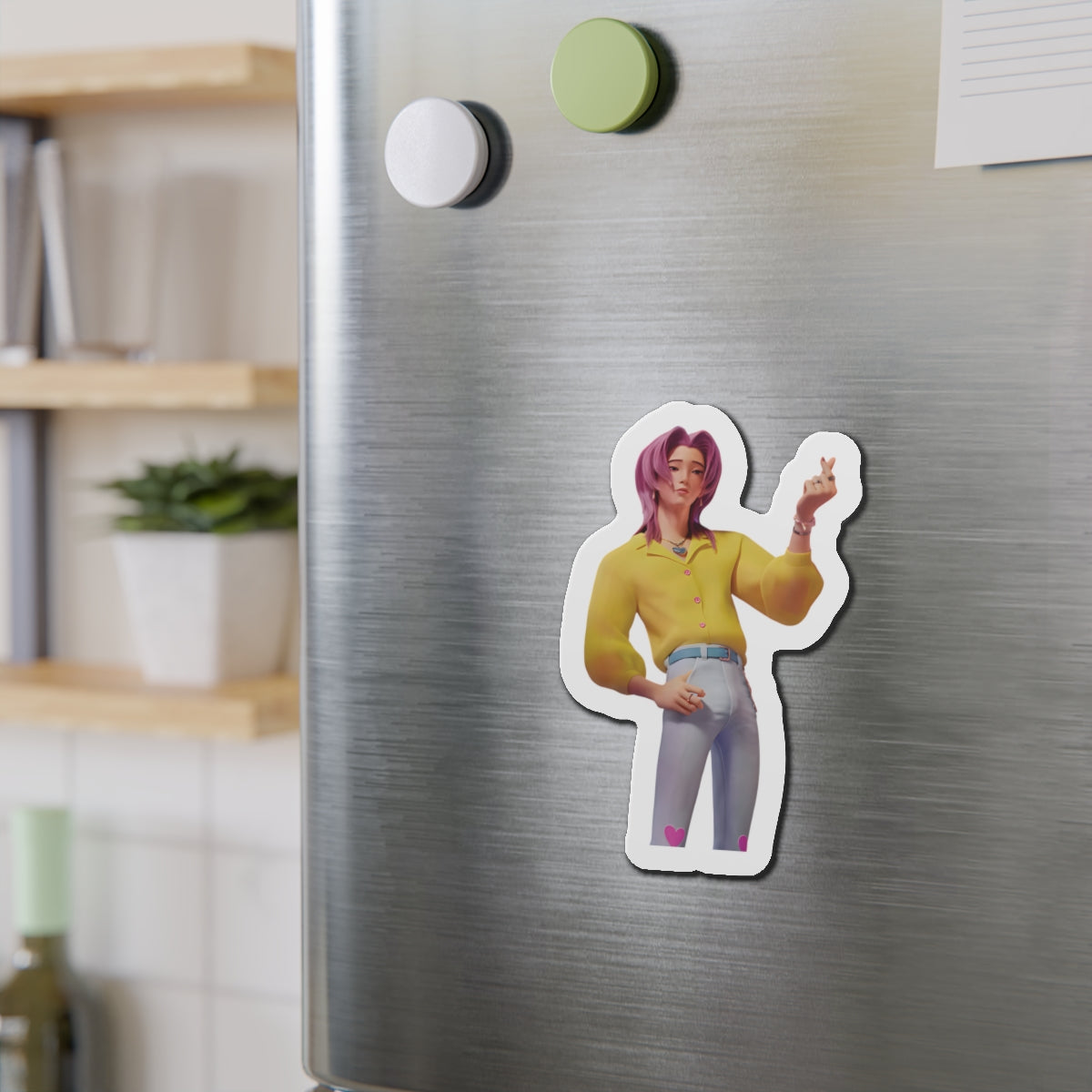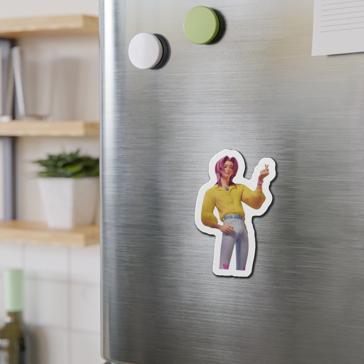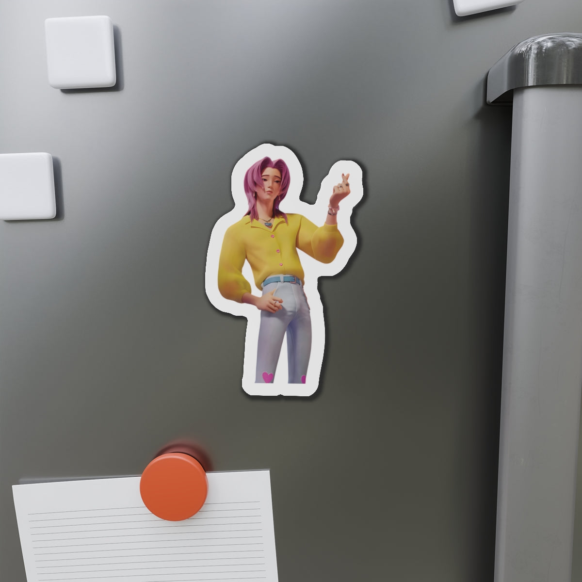 Show off your love for Kpops newest boy group sensation, The Saja Boys, with this stylish magnet! This Kpop Demon Hunters merch makes an ideal gift for Pride fans. Celebrate Jinu, Abby, Romance, Mystery, and Baby Sajas global group success by using this as a car magnet, fridge magnet, whiteboard magnet, school locker magnet or any magnetic surface. Add this to your growing kpop collection and help keep Gwi Ma strong!