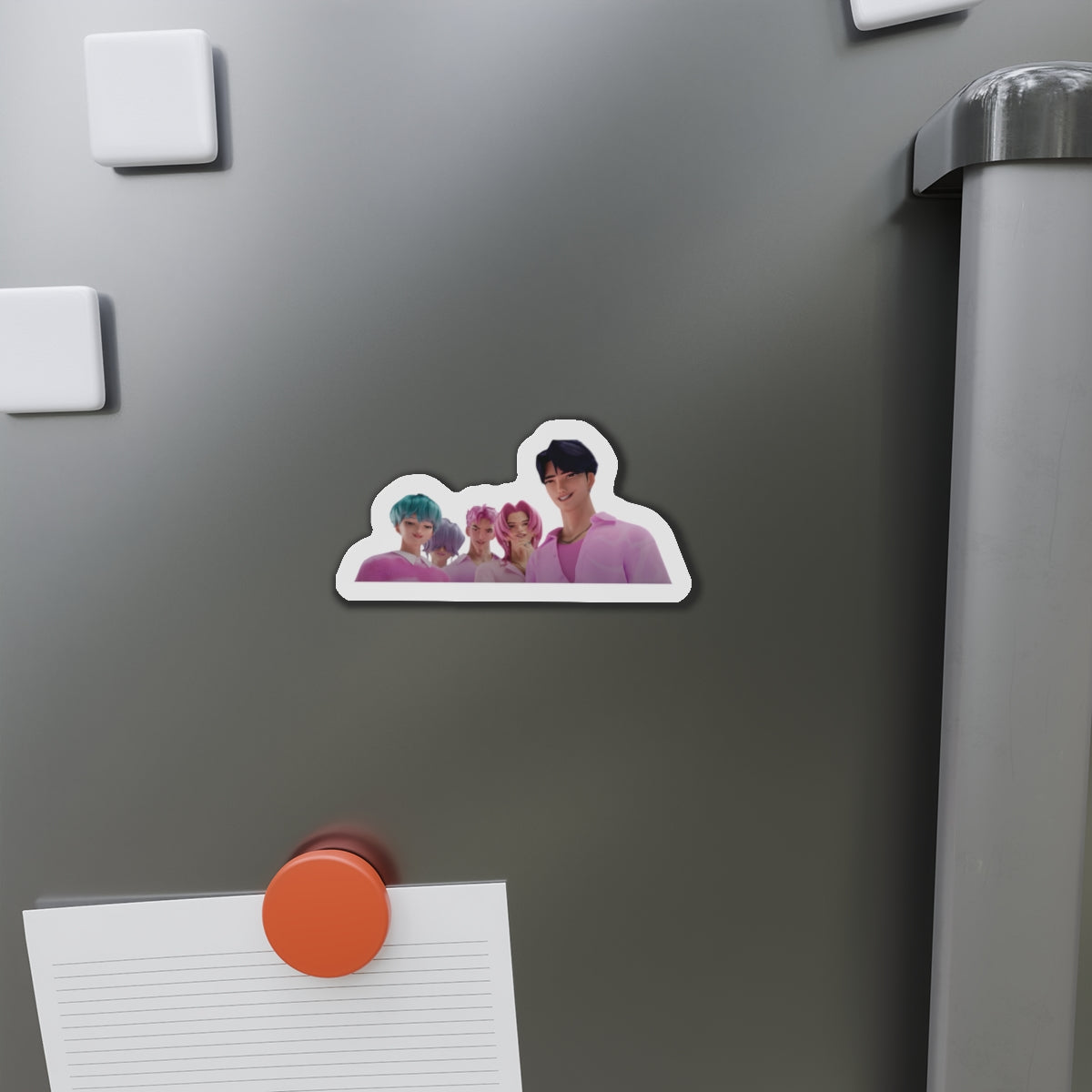 Show off your love for Kpops newest boy group sensation, The Saja Boys, with this stylish magnet! This Kpop Demon Hunters merch makes an ideal gift for Pride fans. Celebrate Jinu, Abby, Romance, Mystery, and Baby Sajas global group success by using this as a car magnet, fridge magnet, whiteboard magnet, school locker magnet or any magnetic surface. Add this to your growing kpop collection and help keep Gwi Ma strong!