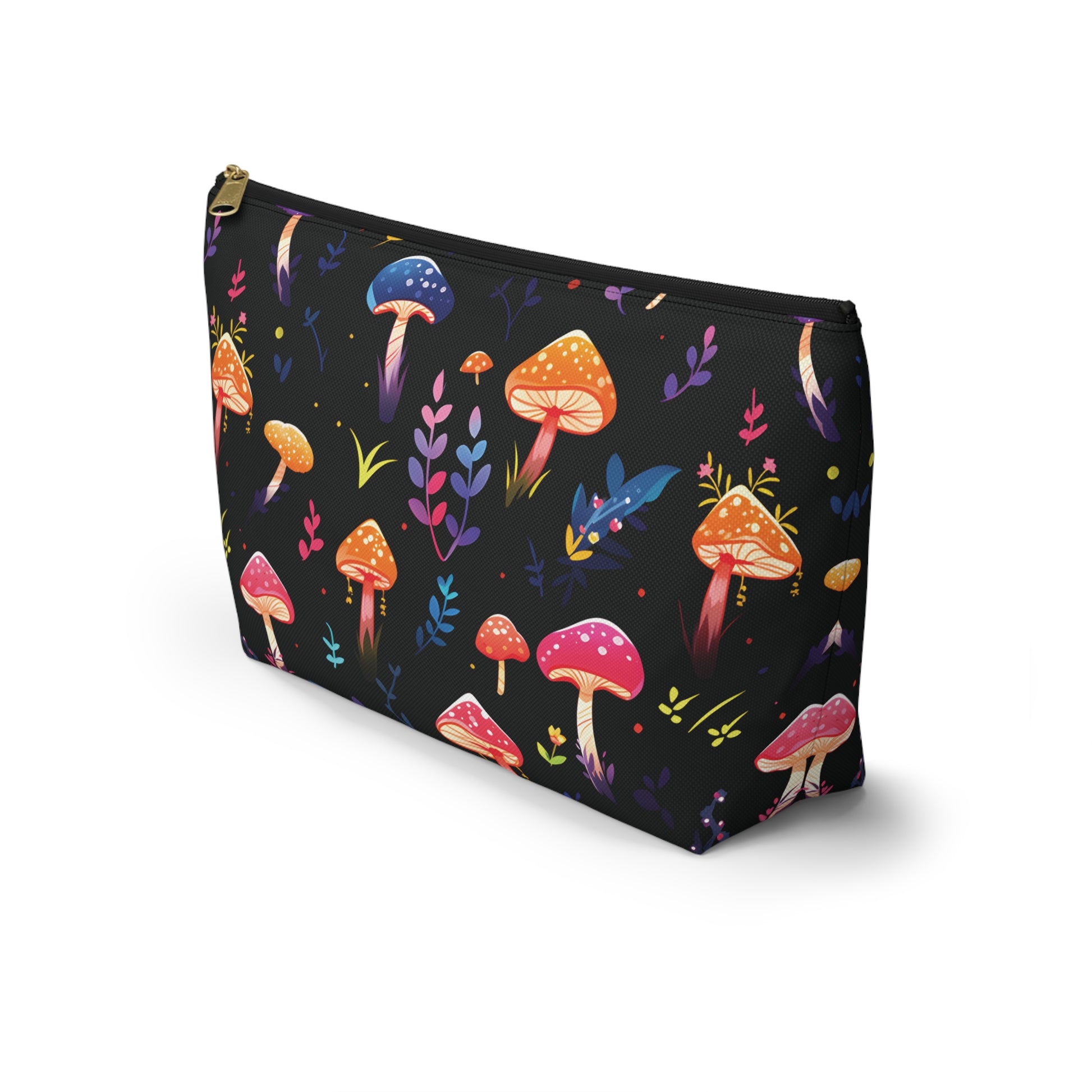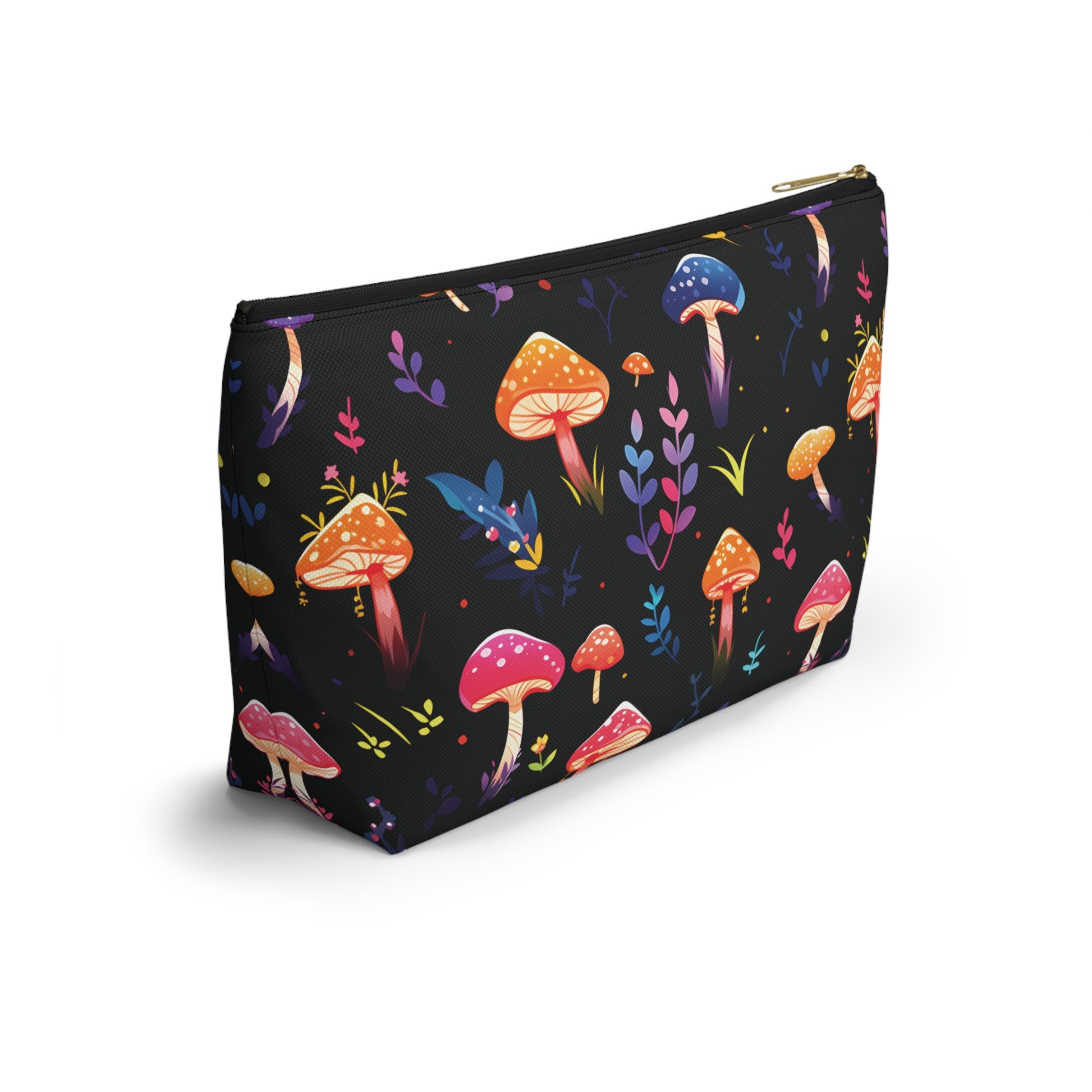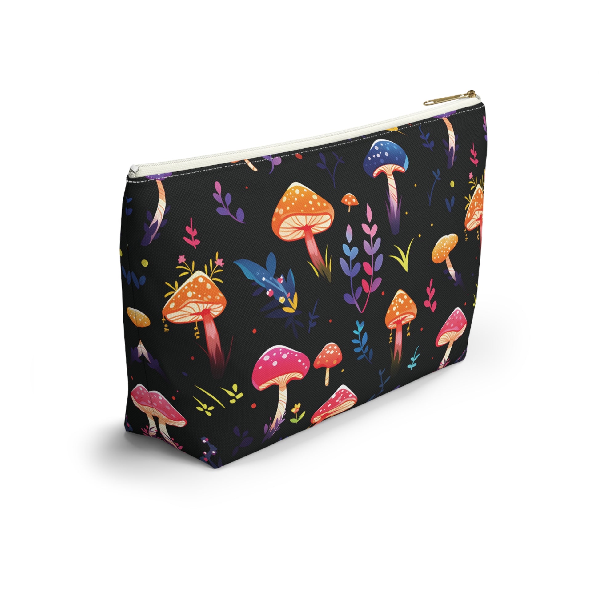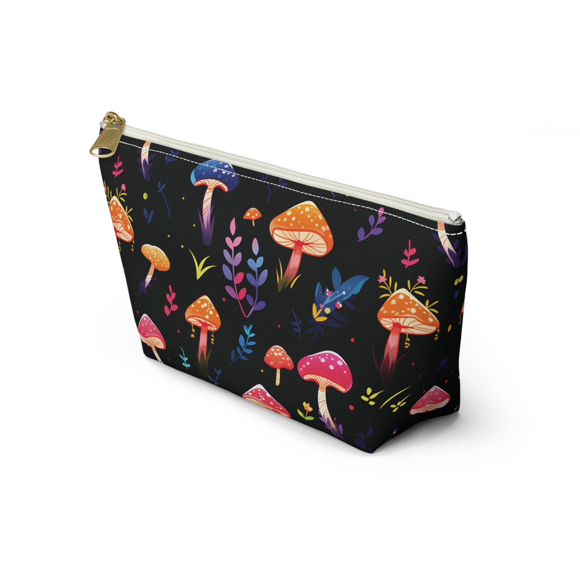 Enjoy mushroom and fungi patterns with this nature-inspired accessory pouch! Featuring vibrant mushroom patterns, it's perfect for carrying your toiletries on vacation, storing your wallet and keys, or keeping your makeup organized. Whether you're using it as a pencil bag or a travel pouch, this colorful fungi-themed design adds a touch of nature to your everyday essentials. It makes a great gift for adults, teens, or anyone who loves mushrooms.