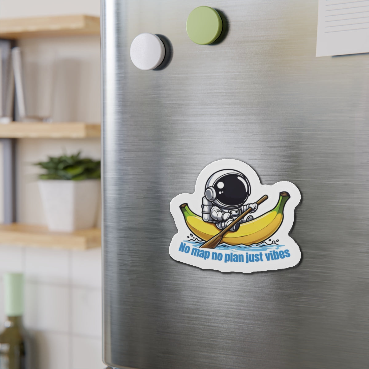 No Plan Just Vibes Astronaut Riding Banana Magnet - Motivational