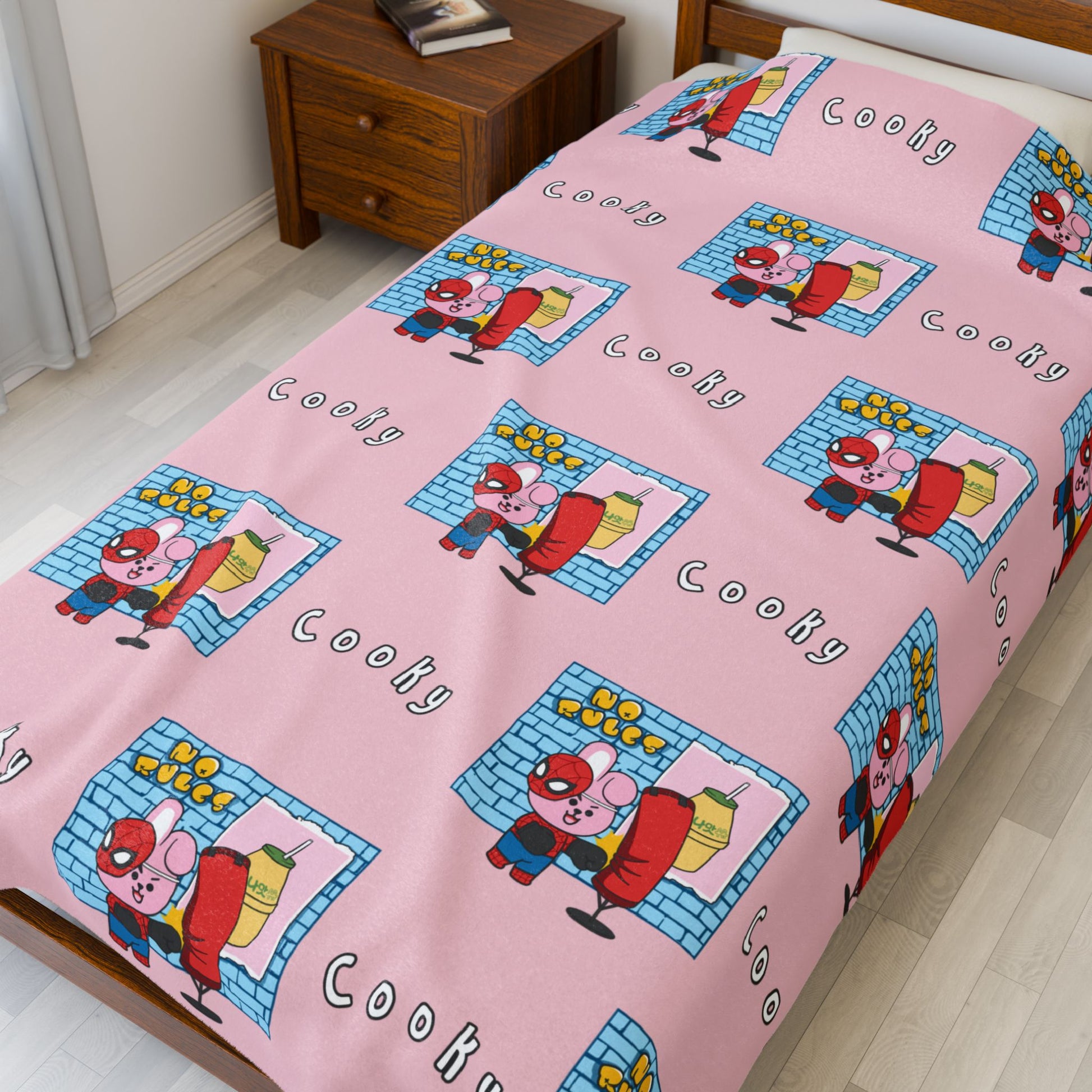 Snuggle up with our BT21 Cooky blanket, featuring Cooky as a comic book superhero! Inspired by his BTS counterpart, Jungkook (JK), this lightweight throw is perfect for cozy nights, kids' bedding, or a stylish touch to your bedroom. Available in three sizes, it’s ideal as a baby blanket, kids' blanket, or a warm addition for any BTS fan. Whether you’re relaxing at home or watching BTS run episodes, this Cooky blanket makes a perfect gift for Army members and fans of Jungkook. Add this must-have BT21 merch to your collection today!