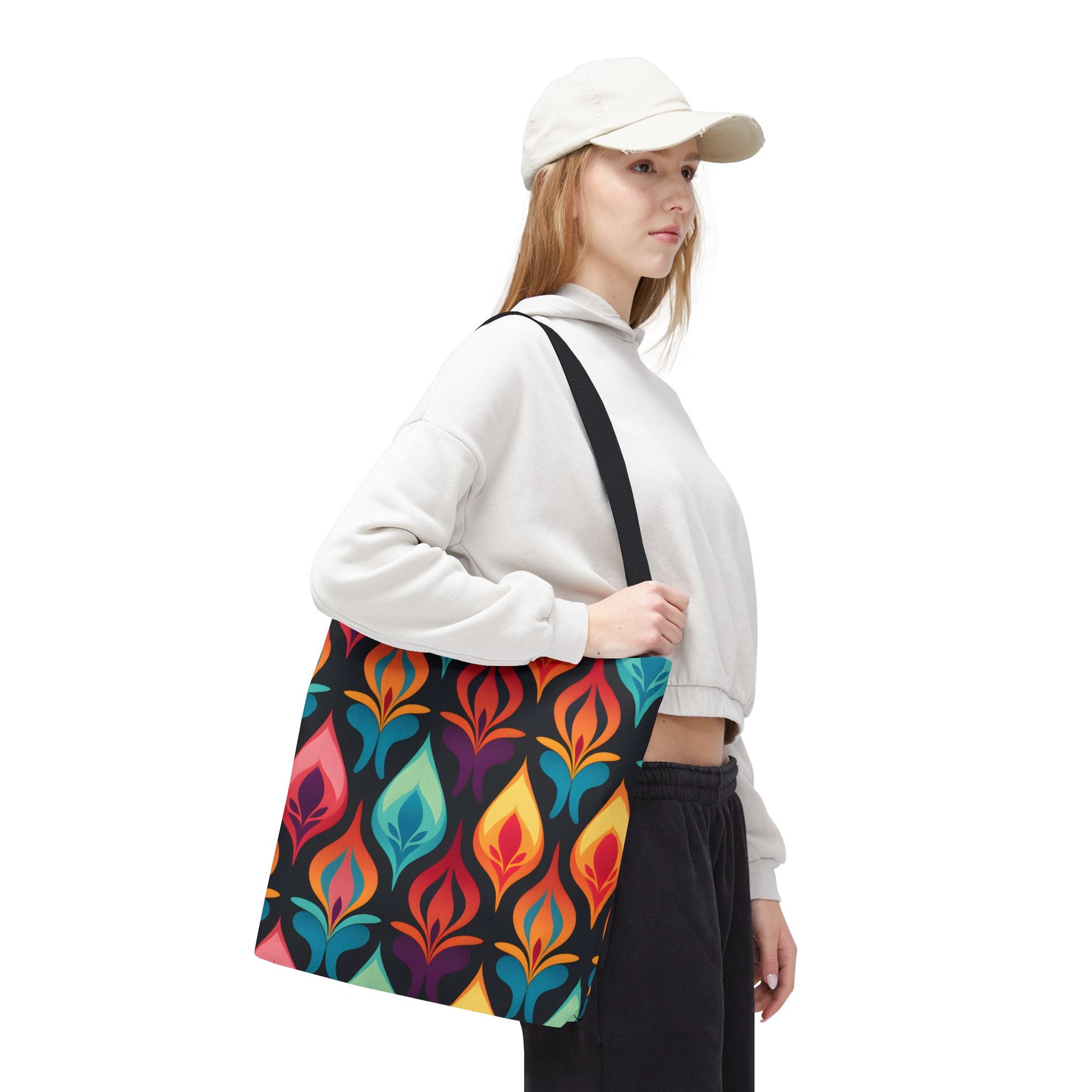 Add some retro flair to your everyday life with our groovy tote bag designs. These totes make the perfect gift for anyone who loves a touch of nostalgia. Featuring bold 70s patterns, these funky totes are reusable and multifunctional. Use them as a grocery bag or shopping bag. They also make great school bags for high school and college students who enjoy a vintage or vibrant look.
