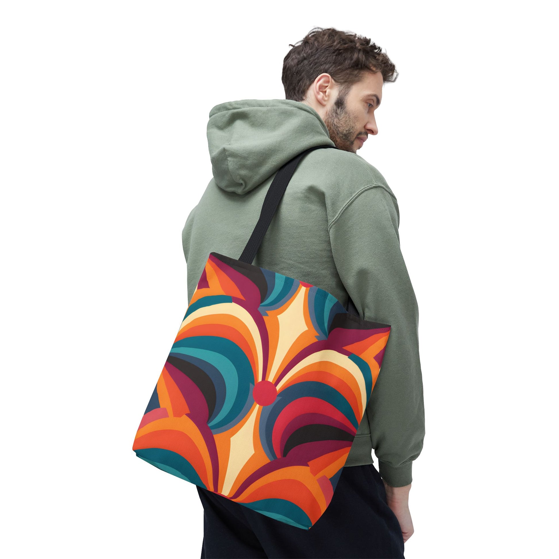 Add some retro flair to your everyday life with our groovy tote bag designs. These totes make the perfect gift for anyone who loves a touch of nostalgia. Featuring bold 70s patterns, these funky totes are reusable and multifunctional. Use them as a grocery bag or shopping bag. They also make great school bags for high school and college students who enjoy a vintage or vibrant look.