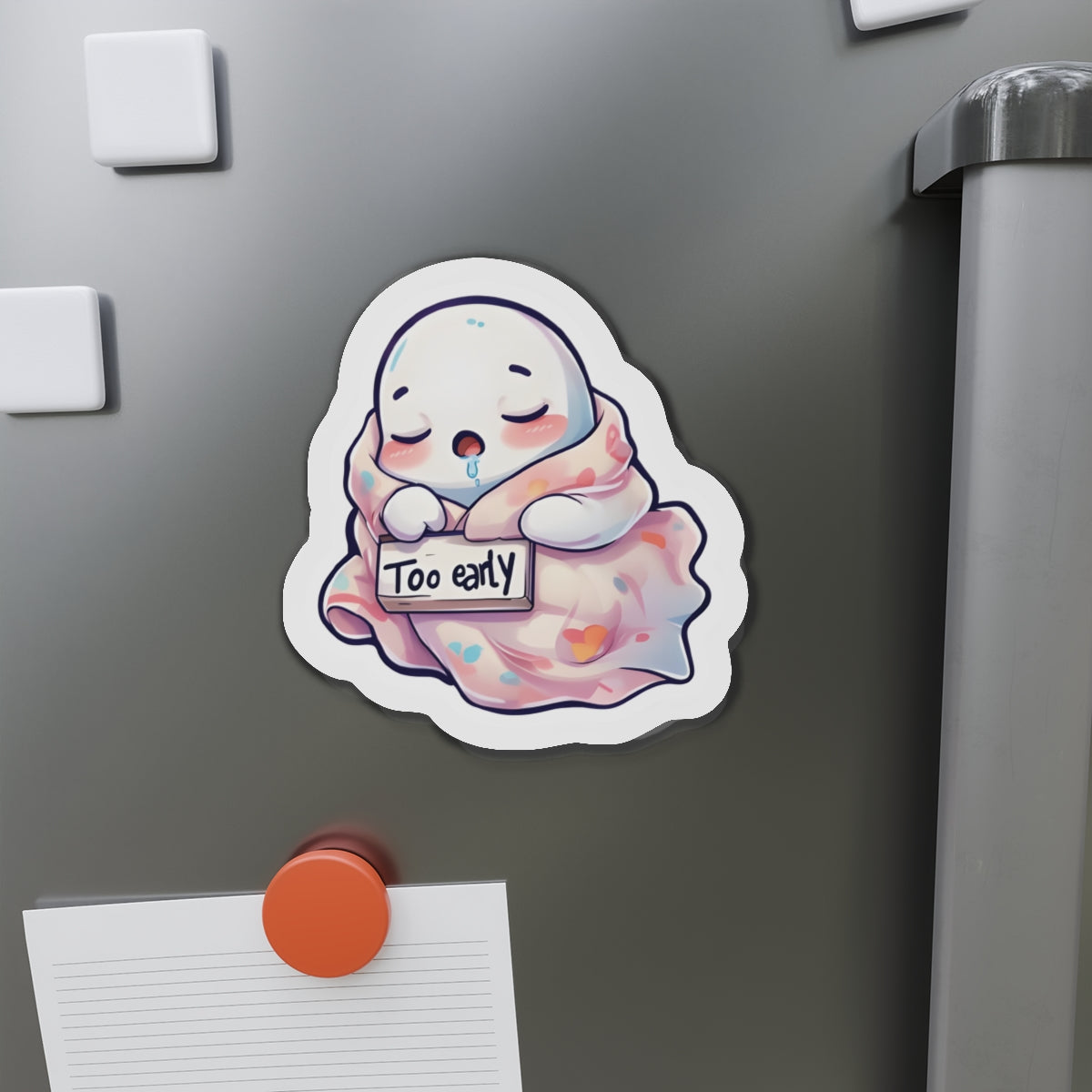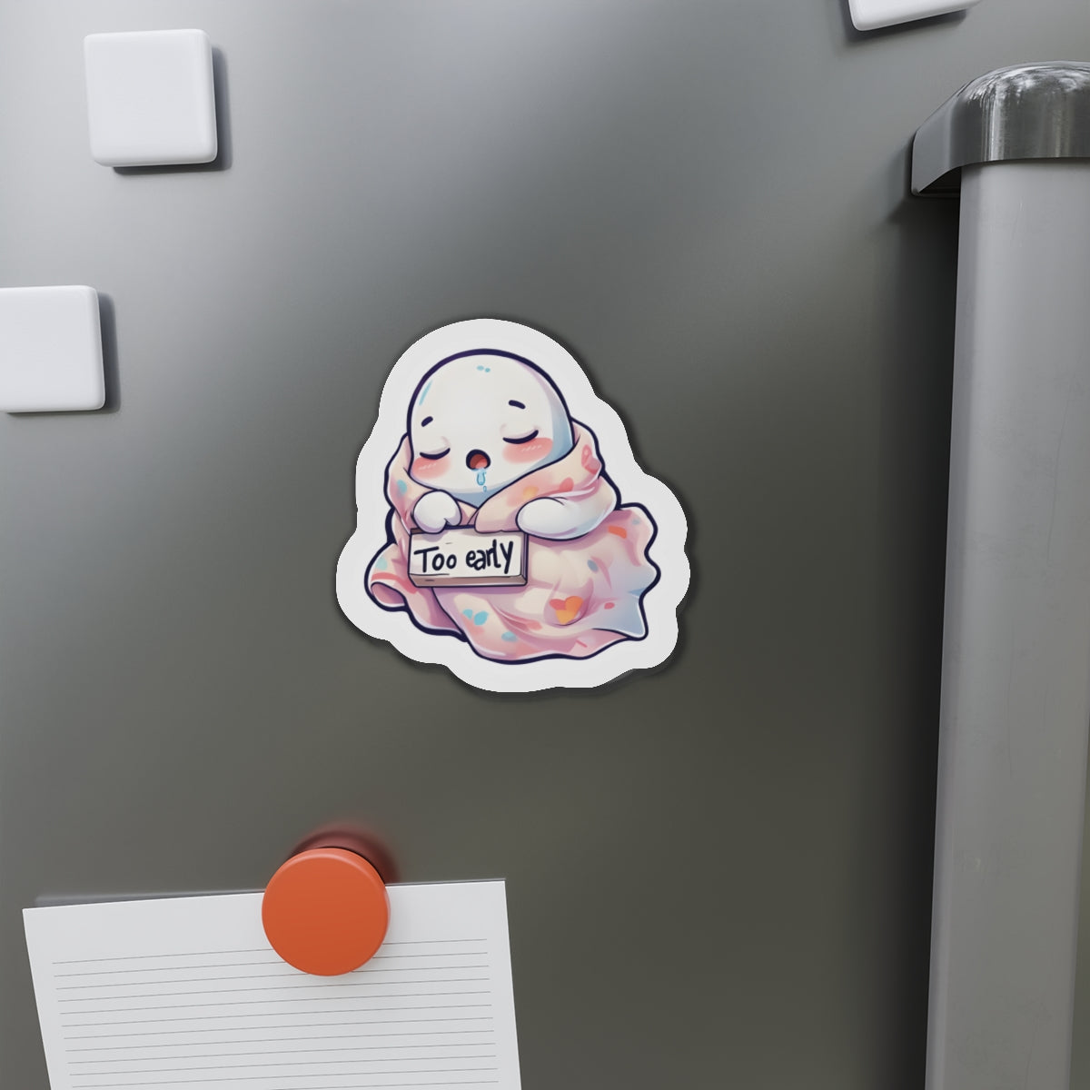 Sleeping Ghost Holding a Too Early Sign Magnet - Funny & Relatable