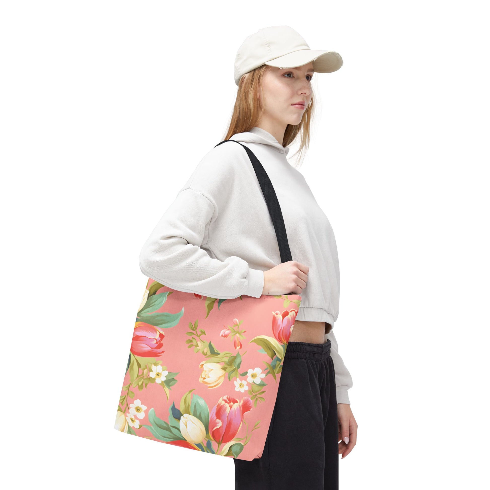 Add some floral flair to your everyday life with our tulip pattern tote bag designs. These totes make the perfect gift for anyone who loves the beauty of tulips. Featuring vibrant botanical patterns and designs, these eco-friendly totes are reusable and multifunctional. Use them as a grocery bag or shopping bag. They also make thoughtful gifts for moms on Mother's Day or for anyone who enjoys a handmade, plant-inspired accessory.