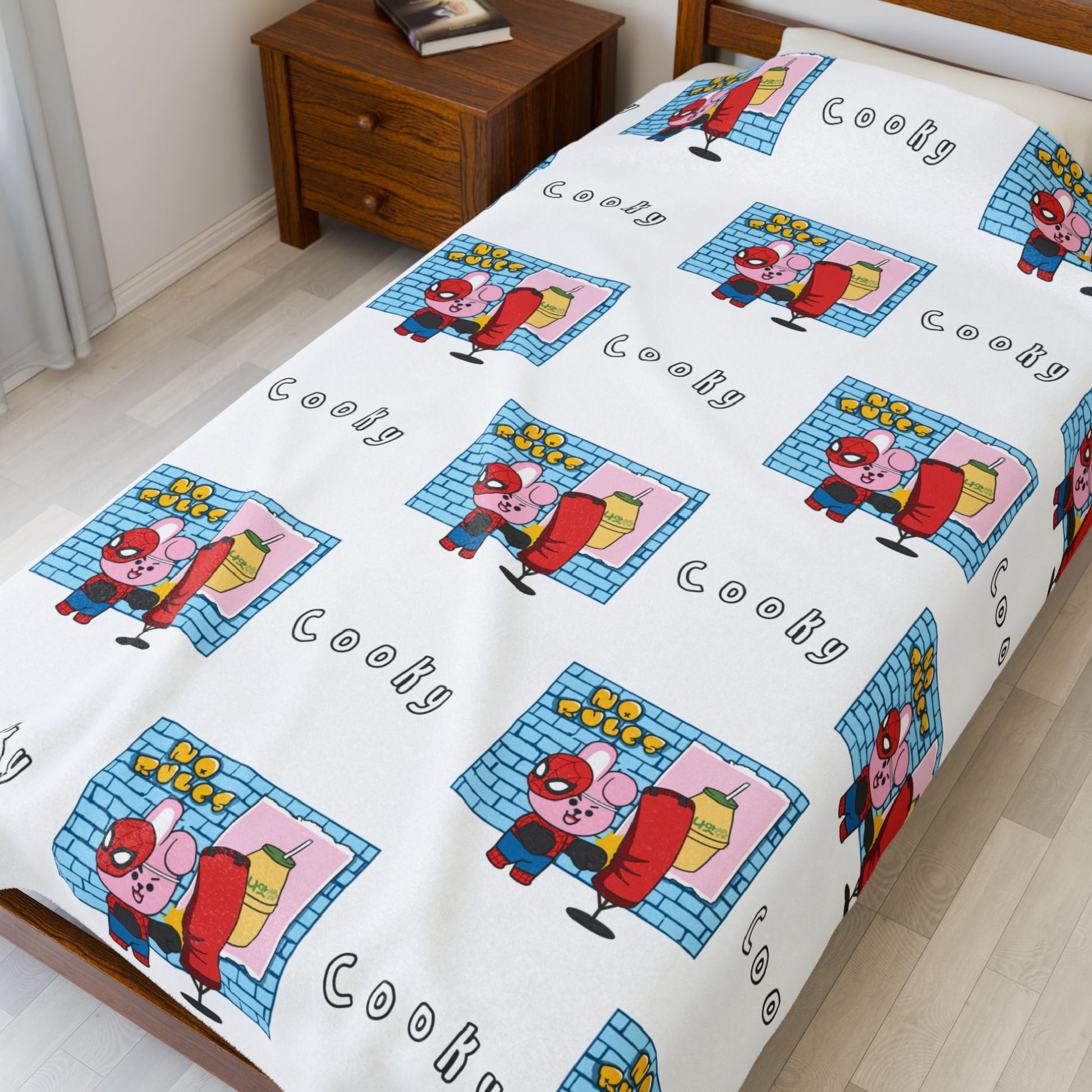 Snuggle up with our BT21 Cooky blanket, featuring Cooky as a comic book superhero! Inspired by his BTS counterpart, Jungkook (JK), this lightweight throw is perfect for cozy nights, kids' bedding, or a stylish touch to your bedroom. Available in three sizes, it’s ideal as a baby blanket, kids' blanket, or a warm addition for any BTS fan. Whether you’re relaxing at home or watching BTS run episodes, this Cooky blanket makes a perfect gift for Army members and fans of Jungkook. Add this must-have BT21 merch to your collection today!